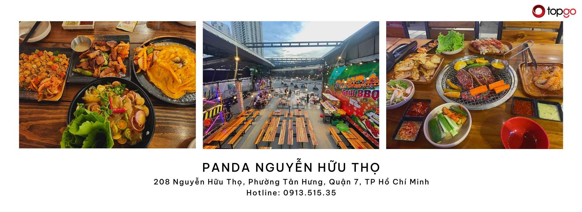 Panda Nướng – 208 Nguyễn Hữu Thọ, Quận 7 là điểm đến sôi động cho những buổi tụ họp bạn bè, gia đình hay đồng nghiệp, mang đến trải nghiệm lẩu – nướng tại bàn với thực đơn đa dạng gồm bò Mỹ mềm ngọt, ba chỉ, gà ướp đậm vị và hải sản tươi ngon được nướng nóng hổi ngay trước mặt thực khách, kết hợp cùng các nồi lẩu kim chi, lẩu nấm và lẩu chua cay giúp bữa ăn thêm trọn vẹn và dễ chia sẻ trong không gian thoáng đãng, vị trí dễ tìm trên trục Nguyễn Hữu Thọ