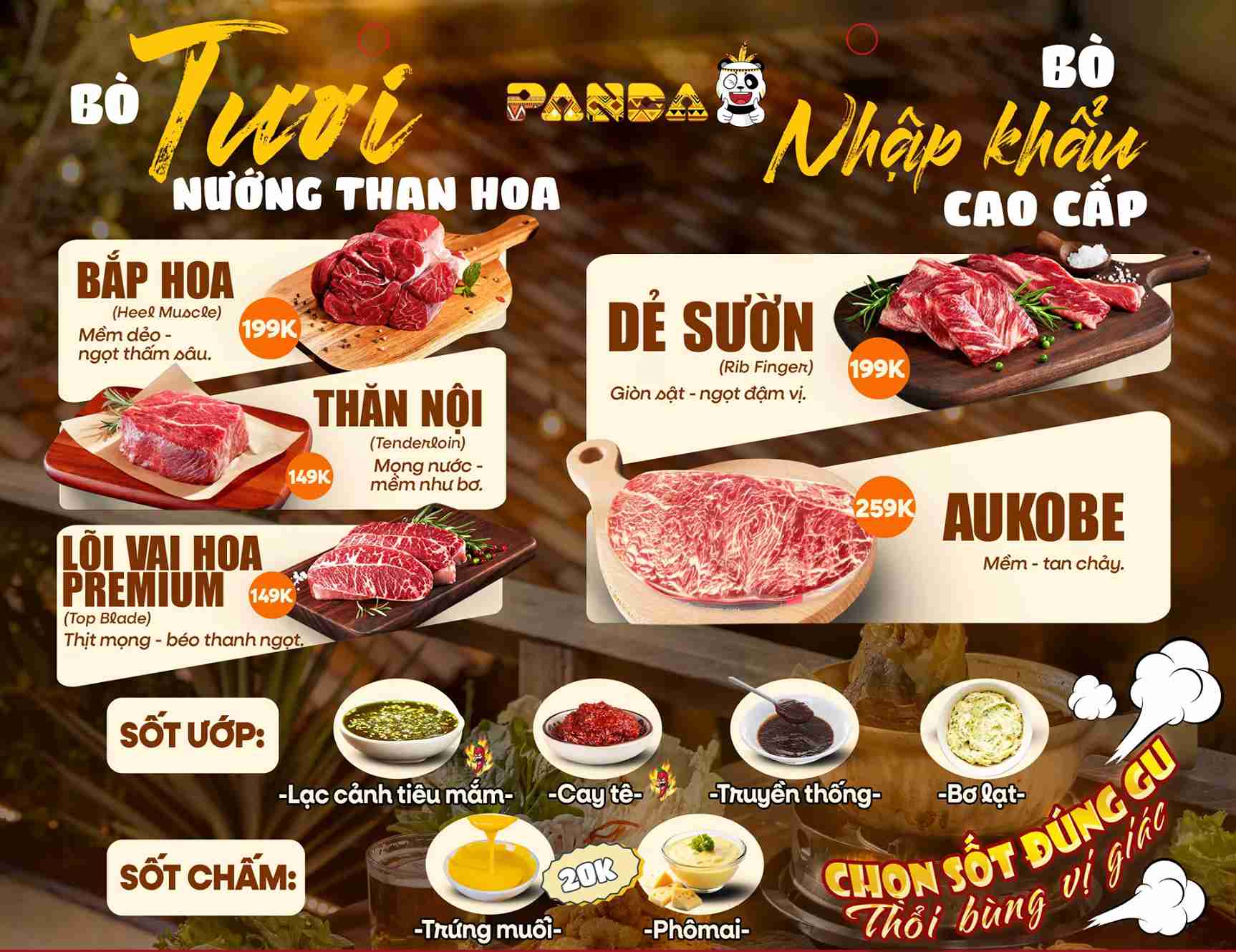 Một số món nướng được nhiều thực khách yêu thích tại Panda gồm: