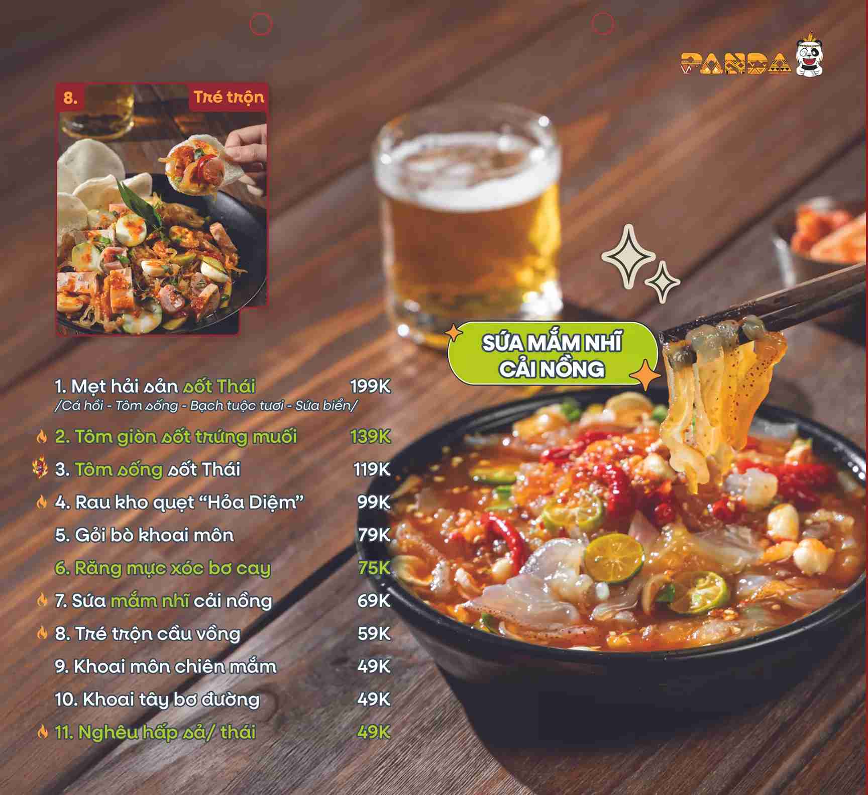Với thực đơn đa dạng, nguyên liệu tươi ngon cùng mức giá hợp lý, Panda ngày càng được nhiều thực khách lựa chọn cho các buổi tụ họp, liên hoan hay gặp gỡ cuối tuần tại TP.HCM.