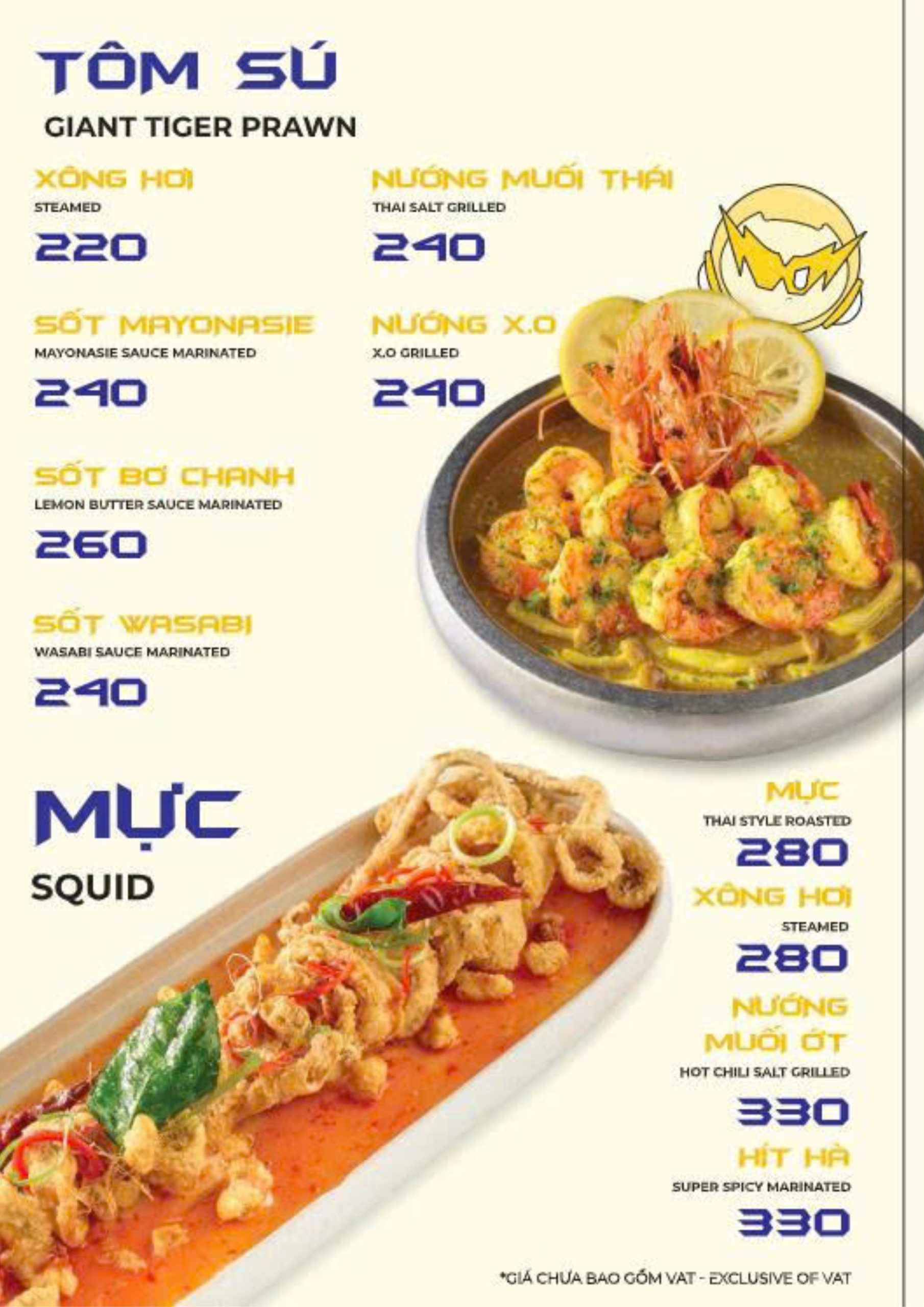 Thực đơn tại Sạc Station không đi theo hướng cầu kỳ. Nhưng lại tập trung vào những món “đúng nhu cầu” khi đi nhậu. Các món hải sản giữ được độ tươi và được chế biến theo cách dễ ăn. Mực nướng, gà nướng là những lựa chọn phổ biến vì dễ chia và phù hợp nhiều khẩu vị.