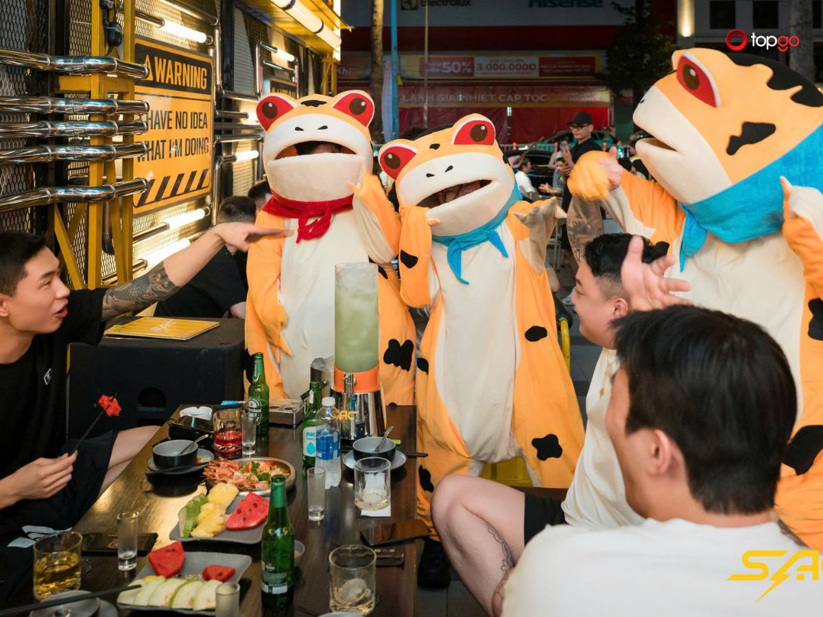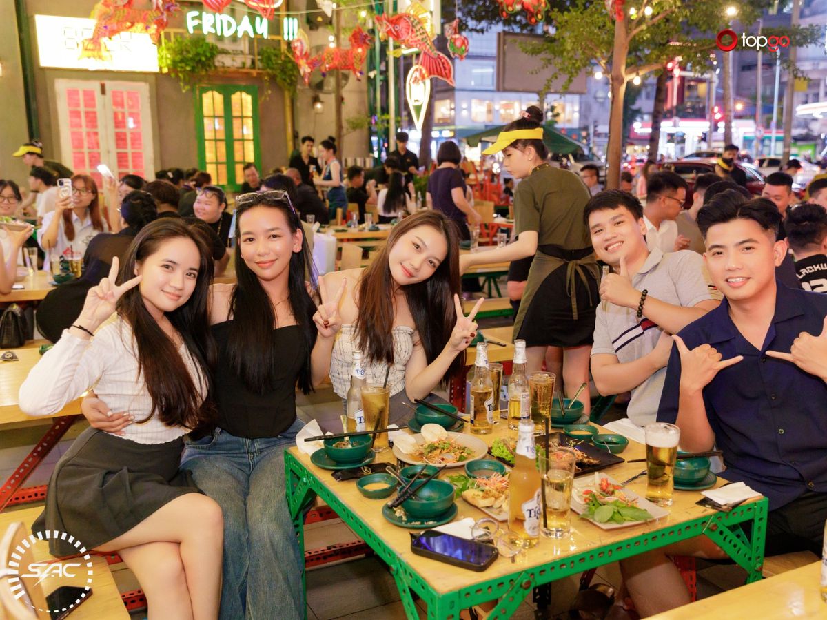 Khu vực ngoài trời là một điểm đáng chú ý. Khi ngồi ở đây, bạn có thể vừa ăn vừa cảm nhận nhịp sống Sài Gòn về đêm. Đây là kiểu trải nghiệm mà nhiều quán trong nhà không thể có được. Không gian bên trong lại phù hợp hơn cho những nhóm muốn tập trung vào cuộc trò chuyện. Không bị ảnh hưởng bởi tiếng ồn bên ngoài, nhưng vẫn giữ được sự kết nối với không khí chung của quán. Nếu bạn muốn chọn khu vực phù hợp hơn với nhu cầu, TopGo có thể hỗ trợ giữ bàn trước để bạn không phải chọn ngẫu nhiên khi đến.