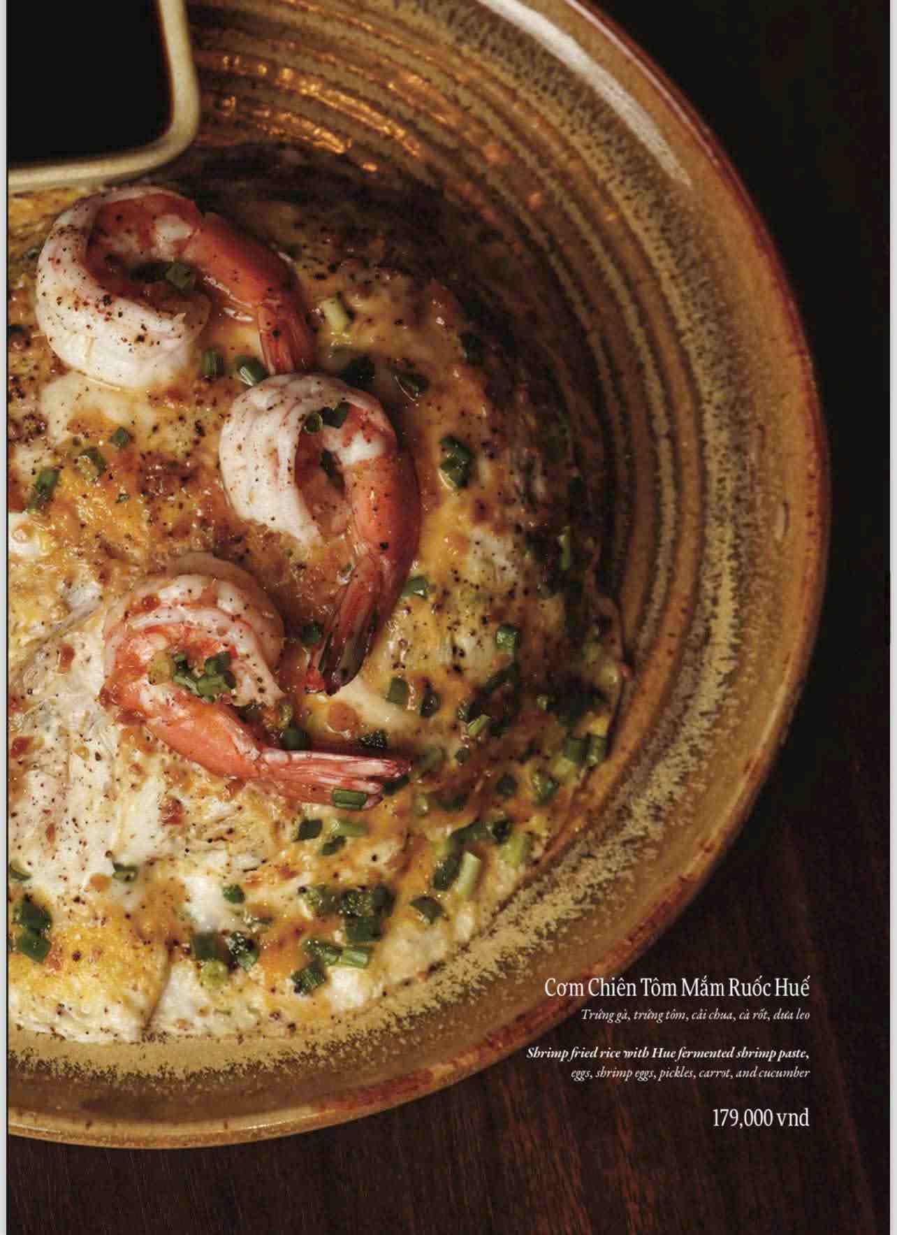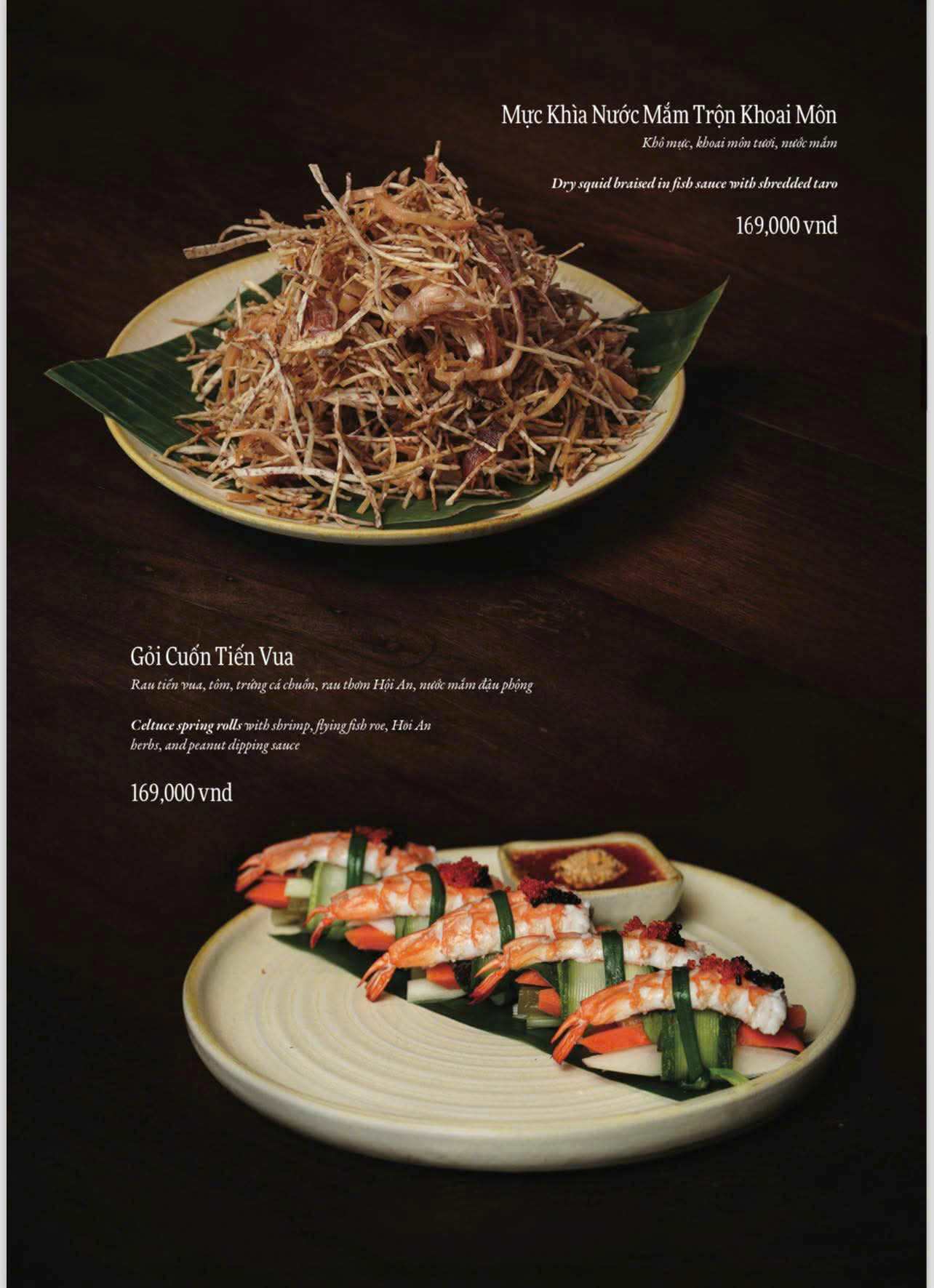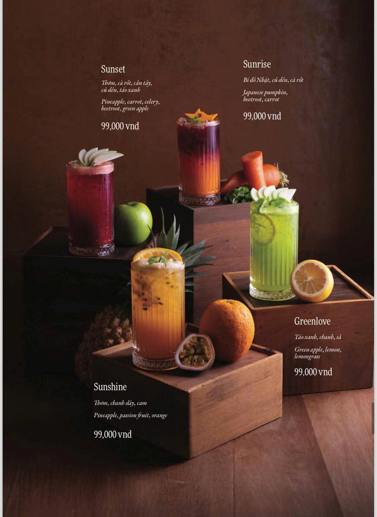 Ẩm thực Việt là nền tảng chính của thực đơn. Các món ăn được biến tấu theo phong cách fusion. Sự kết hợp mang tính chọn lọc và tinh tế. Hương vị quen thuộc được làm mới sáng tạo. Thực khách dễ cảm nhận và dễ yêu thích.