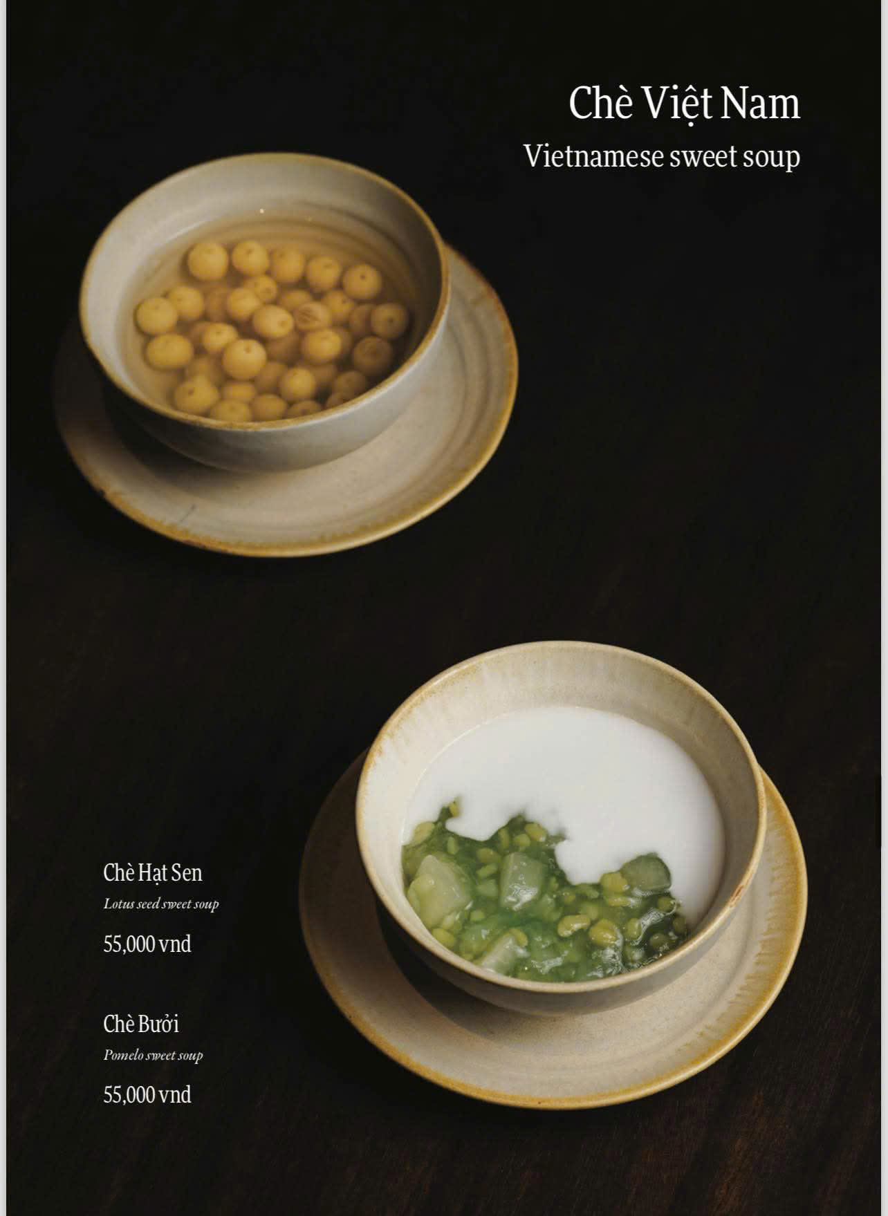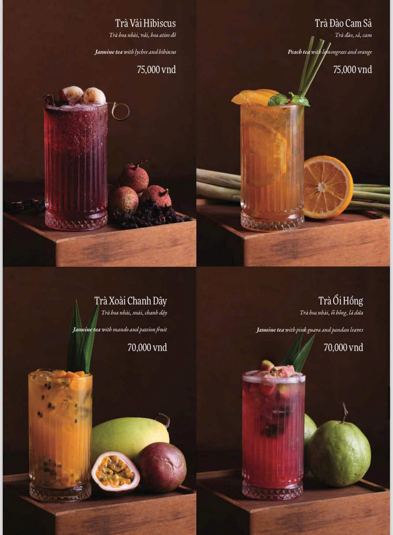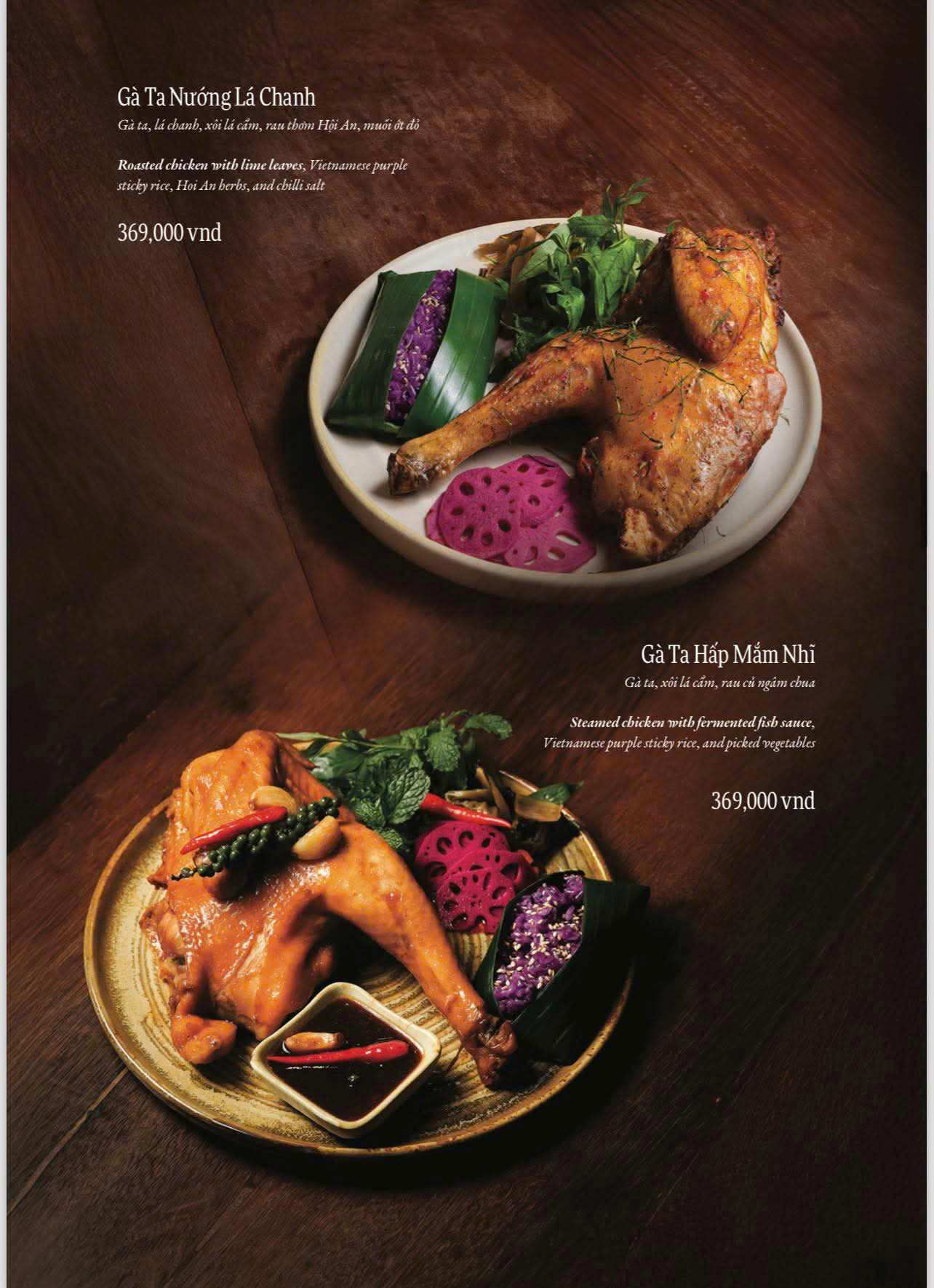Ẩm thực Việt là nền tảng chính của thực đơn. Các món ăn được biến tấu theo phong cách fusion. Sự kết hợp mang tính chọn lọc và tinh tế. Hương vị quen thuộc được làm mới sáng tạo. Thực khách dễ cảm nhận và dễ yêu thích.