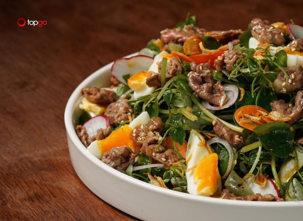 Gỏi Việt biến tấu mang cảm giác tươi mát. Các nguyên liệu kết hợp cân bằng. Hương vị nhẹ nhàng và dễ ăn. Món phù hợp cho khai vị. Thực khách thường lựa chọn món này.