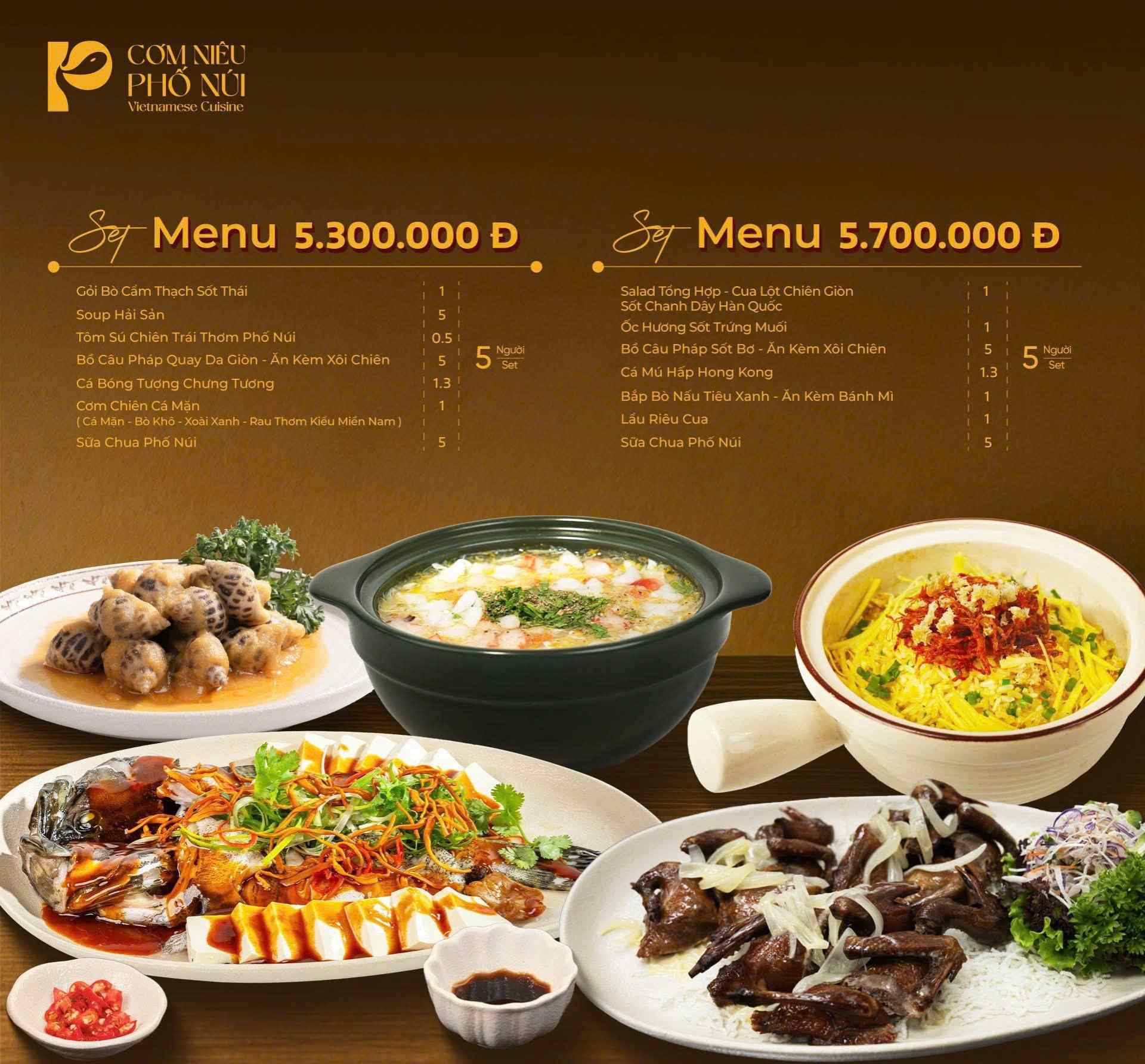 - Set 5.300.000đ & 5.700.000đ: Hai lựa chọn premium với nhiều món đặc biệt, trình bày đẹp mắt – hoàn hảo cho tiệc lớn, tiệc tri ân hoặc year-end party chuyên nghiệp.