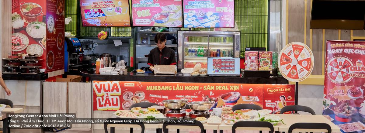 Với không gian hiện đại, thực đơn lẩu phong phú, đồ uống đa dạng và ưu đãi hấp dẫn. Hongkong Center Aeon Mall Hải Phòng là lựa chọn lý tưởng cho mọi cuộc vui. Từ hẹn hò, tụ họp bạn bè, liên hoan gia đình đến trải nghiệm ẩm thực độc đáo.