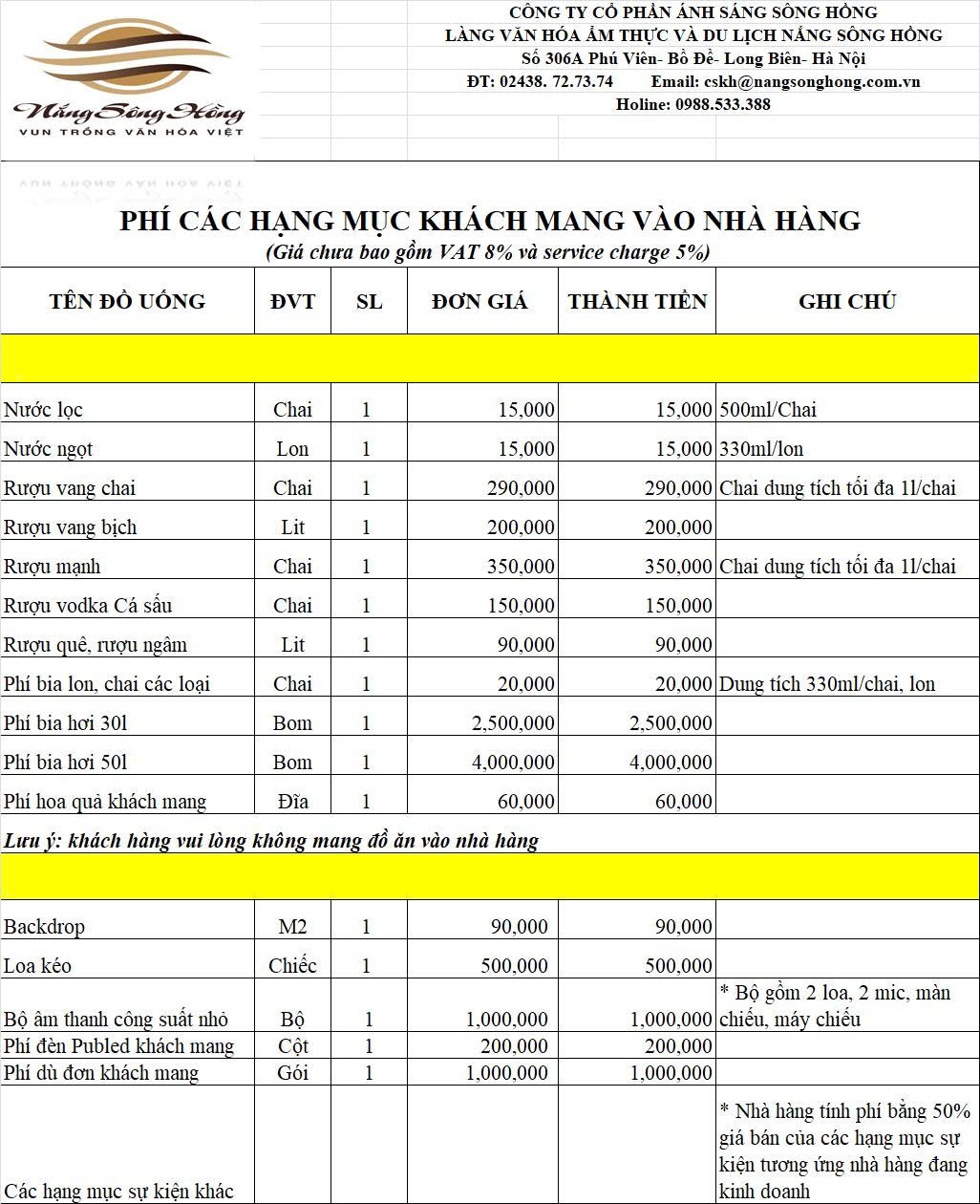 Hãy để Làng Văn Hóa Ẩm Thực Nắng Sông Hồng mang đến cho bạn những phút giây ẩm thực khó quên. Hòa quyện giữa hương vị, không gian và dịch vụ đẳng cấp!
