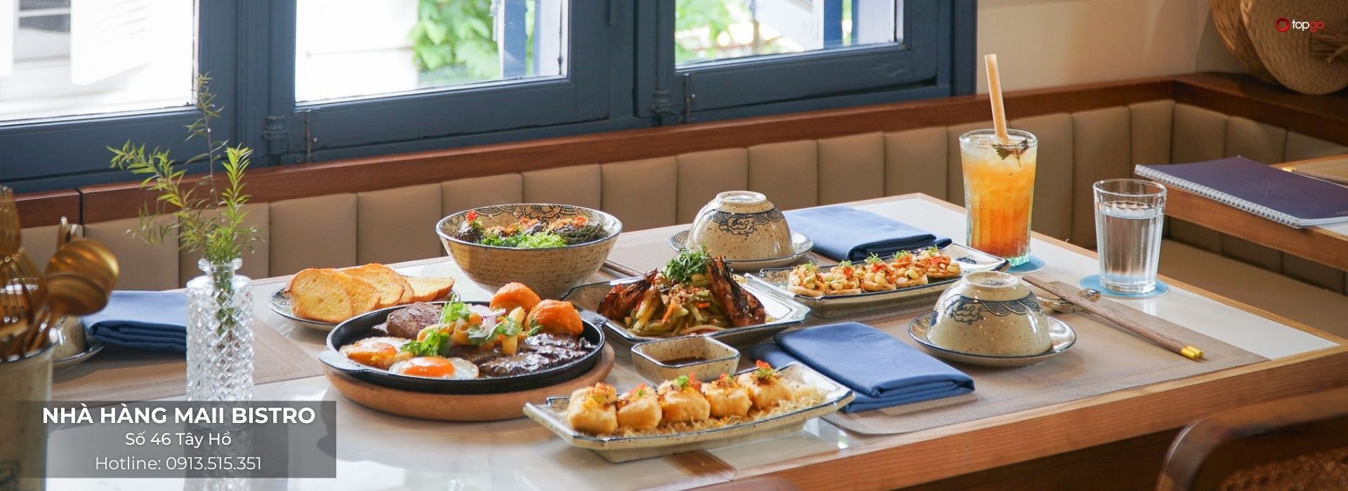 Để được tư vấn chỗ ngồi phù hợp, sắp xếp không gian cho đoàn đông hoặc cập nhật ưu đãi mới nhất, thực khách nên đặt bàn trước. Đừng quên gọi ngay hotline 0913515351 để được đội ngũ TopGo tư vấn, hỗ trợ miễn phí và đặt bàn nhanh chóng nhé!