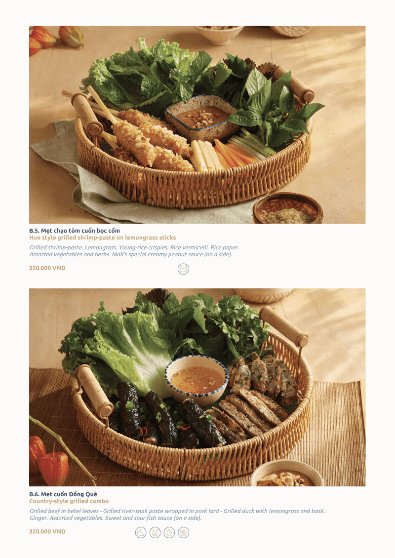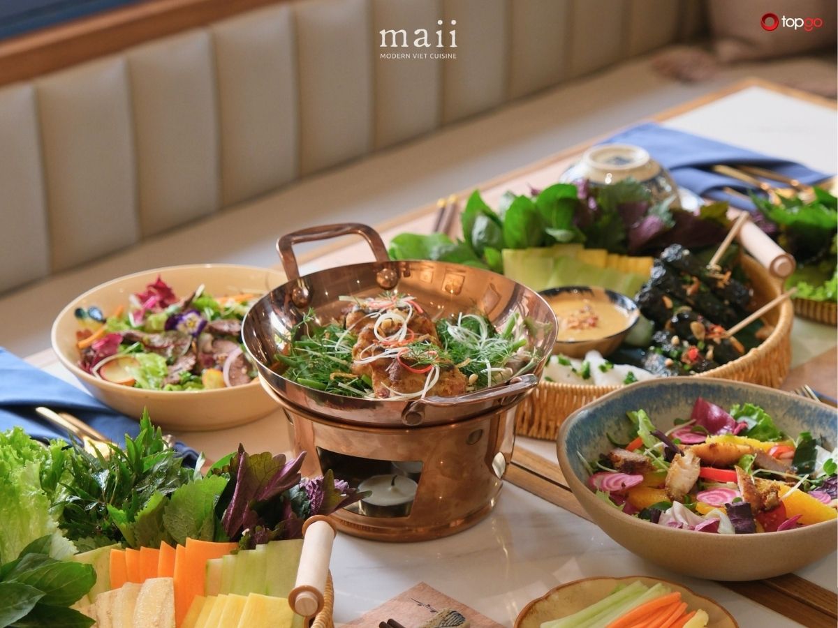 Nhóm mát dạ tạo nên khoảng lặng dễ chịu trong bữa ăn. Rau xanh, thảo mộc, trái cây và các nguyên liệu tươi được kết hợp hài hòa. Vị thanh, mát, nhẹ bụng. Không gây ngấy, không nặng dạ. Đây là nhóm món giúp cân bằng vị giác sau các món đậm đà hơn. Mát dạ tại Maii Bistro mang đúng tinh thần ẩm thực Việt: ăn để thấy dễ chịu.