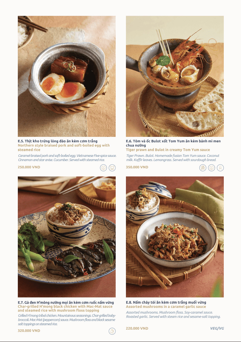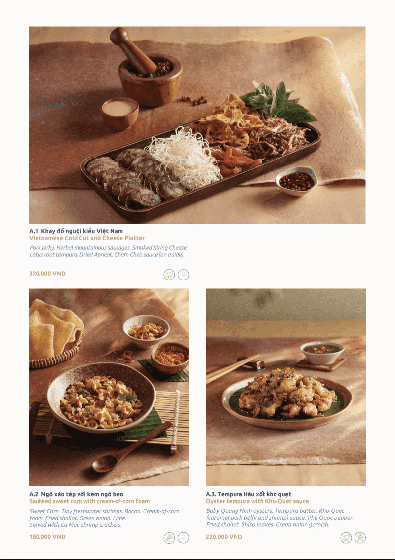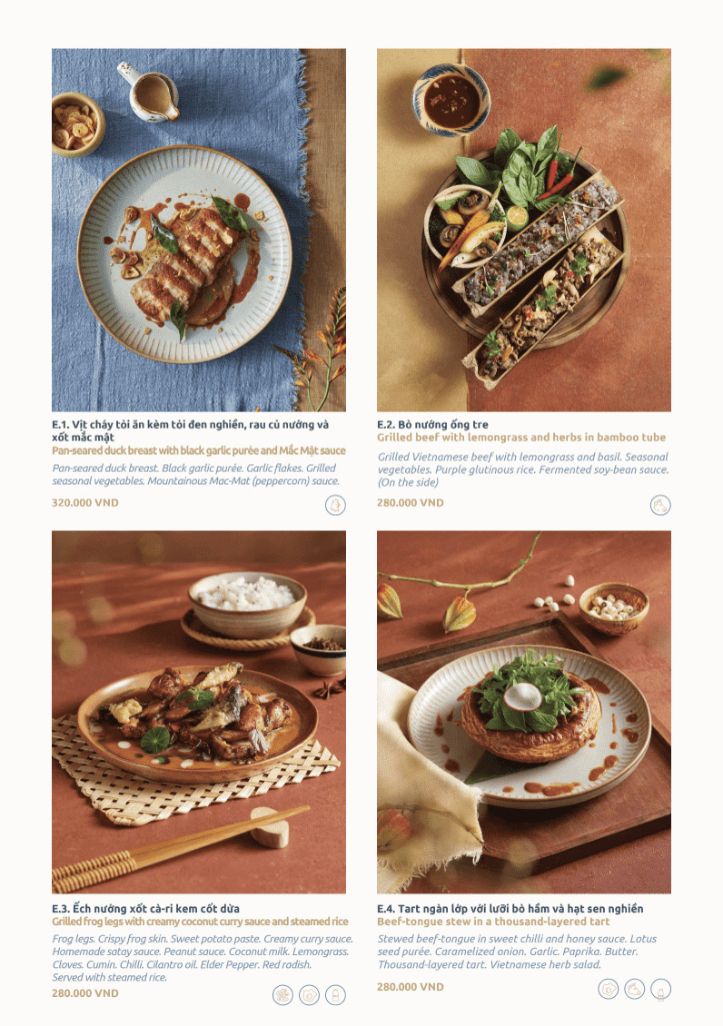 Đây là phong cách Modern Viet Cuisine rõ nét. Tôn trọng nền tảng ẩm thực Việt, nhưng kể lại bằng ngôn ngữ đương đại.