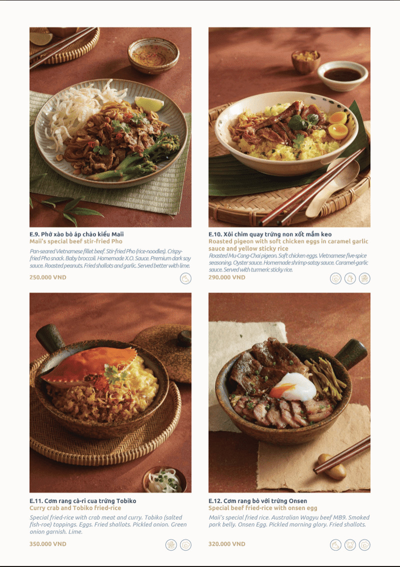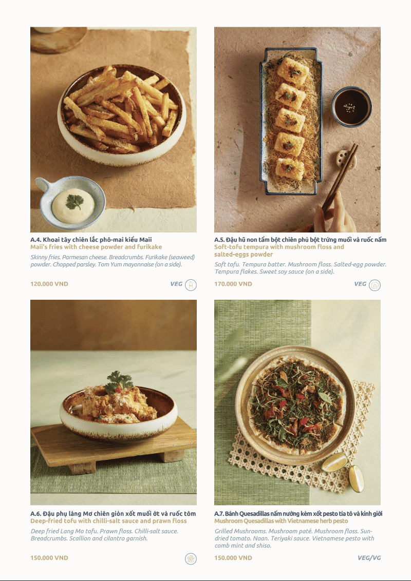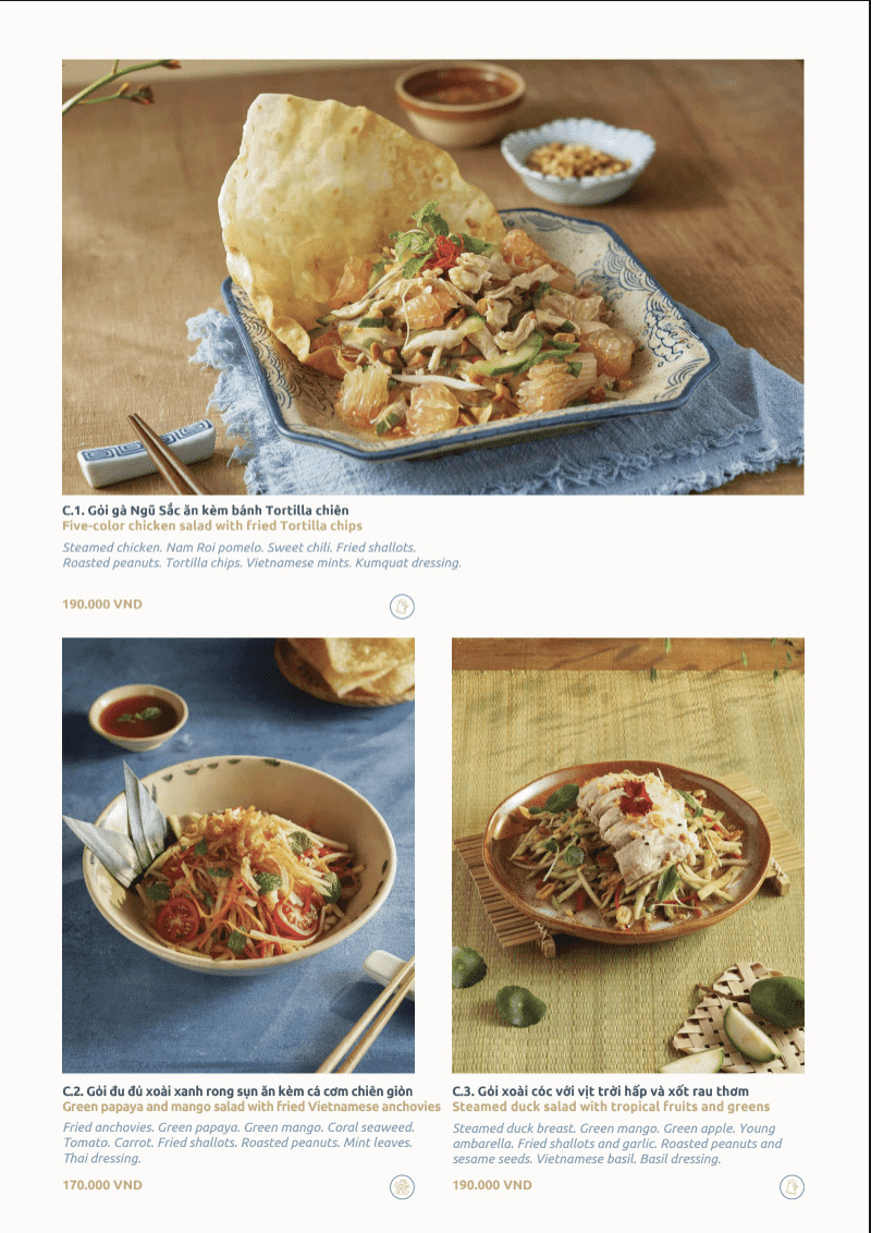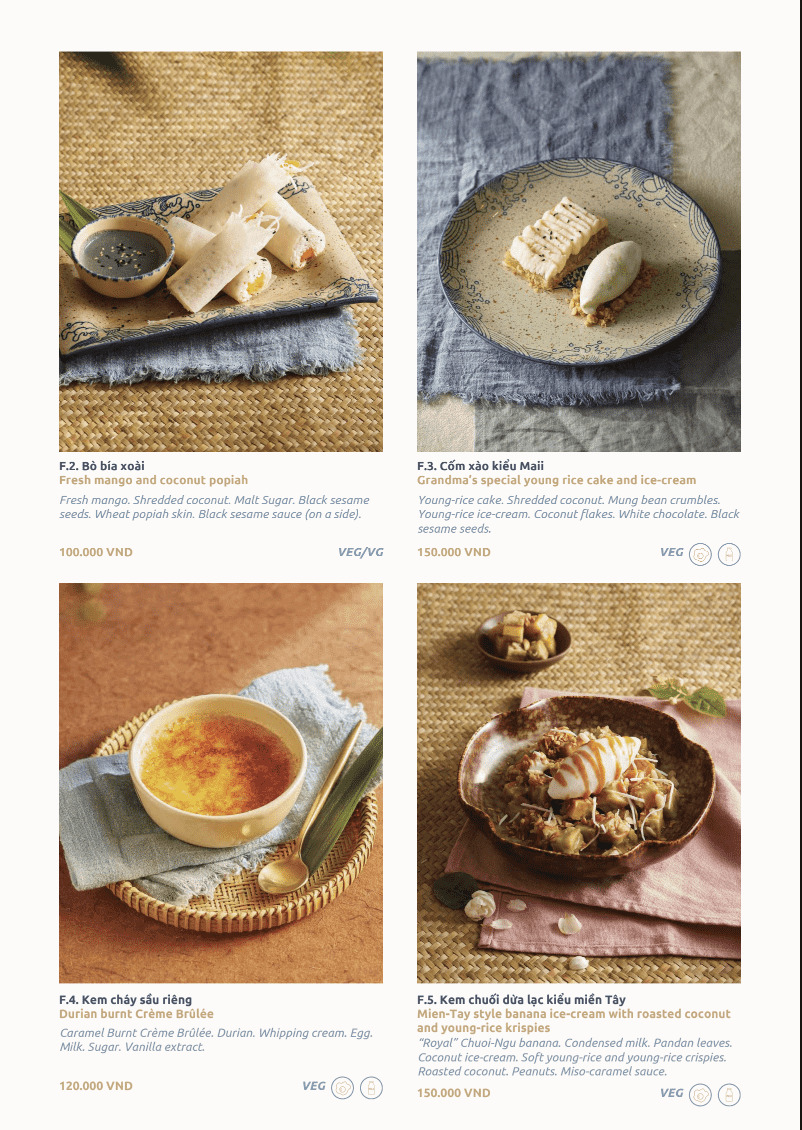 Đây là phong cách Modern Viet Cuisine rõ nét. Tôn trọng nền tảng ẩm thực Việt, nhưng kể lại bằng ngôn ngữ đương đại.