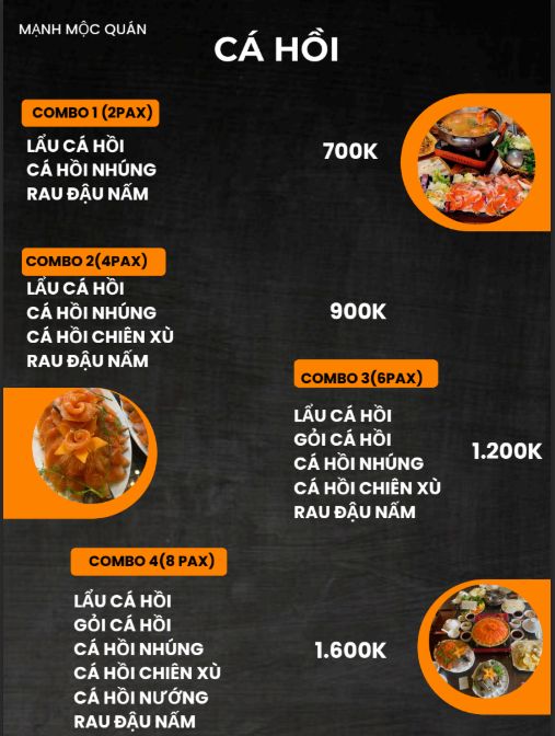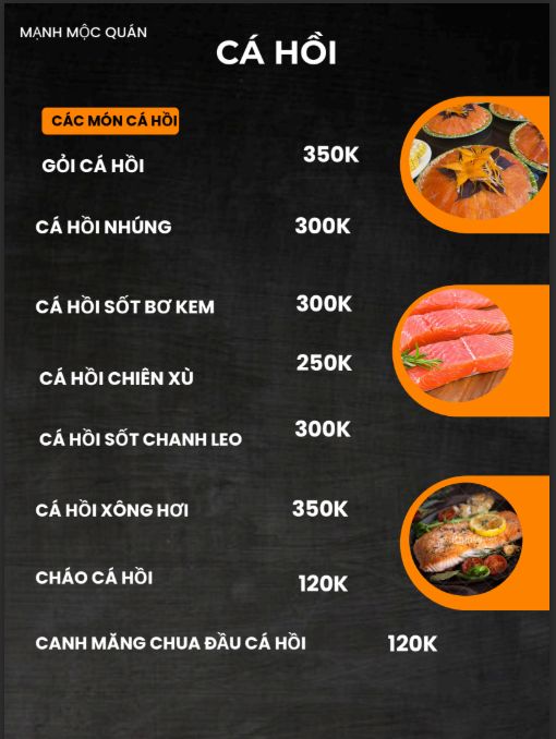 Cá tầm dai, hòa với lớp muối rang lá rừng tạo vị đặc trưng.Lẩu cá hồi 300.000 – 700.000