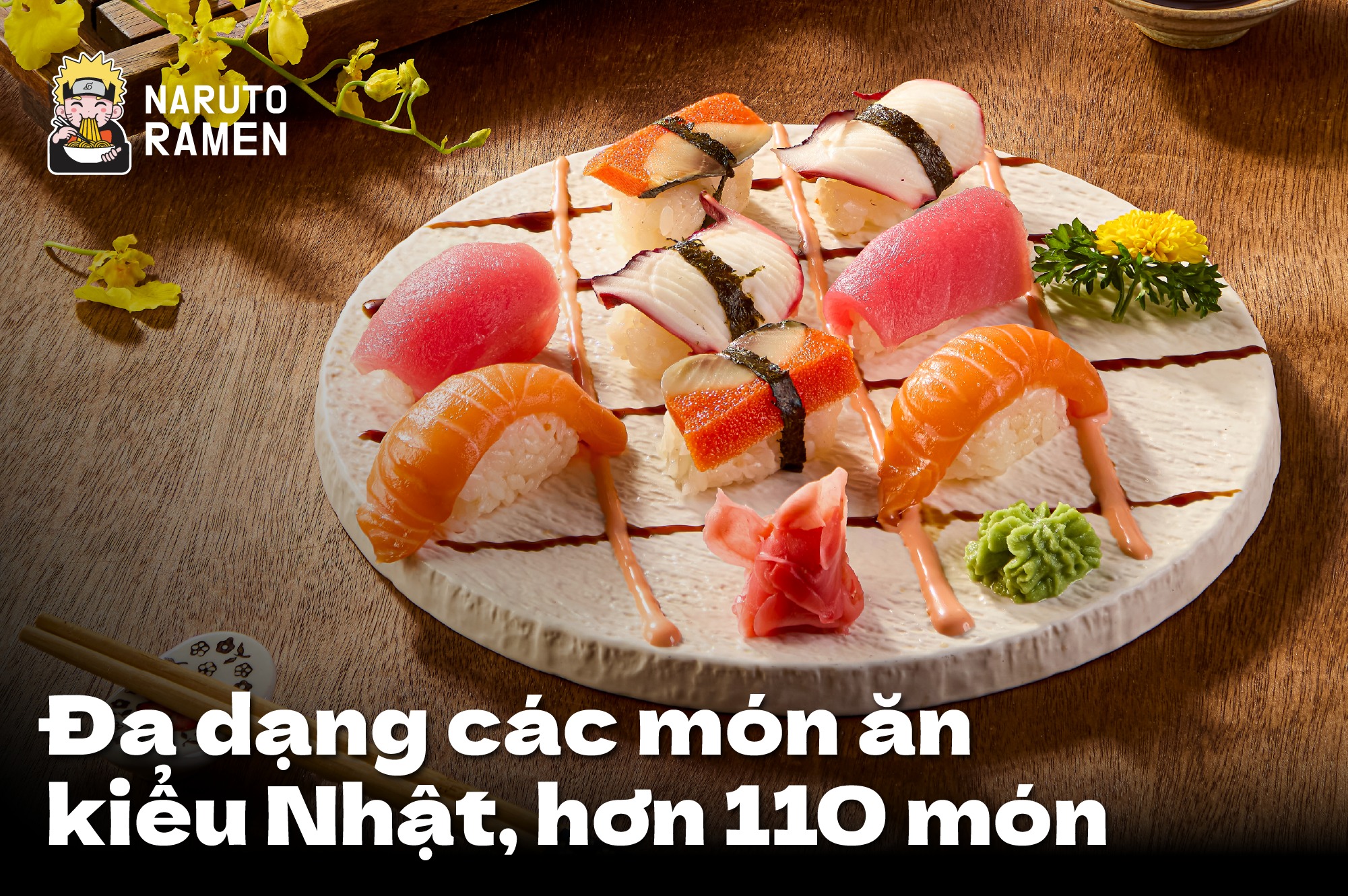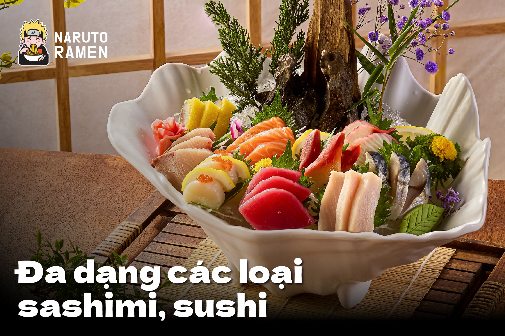 Không chỉ dừng lại ở sashimi, thế giới sushi tại Naruto Ramen Kim Mã Thượng cũng vô cùng sống động và phong phú. Từng lát cá được tuyển chọn kỹ lưỡng, đảm bảo độ tươi ngon nguyên bản từ những nguồn cung cấp uy tín nhất. Bạn thèm sushi? Đã có Naruto Ramen Kim Mã Thượng lo! Sashimi tươi – Sushi chuẩn Nhật. Mà giá cả thì cực kỳ yêu thương.