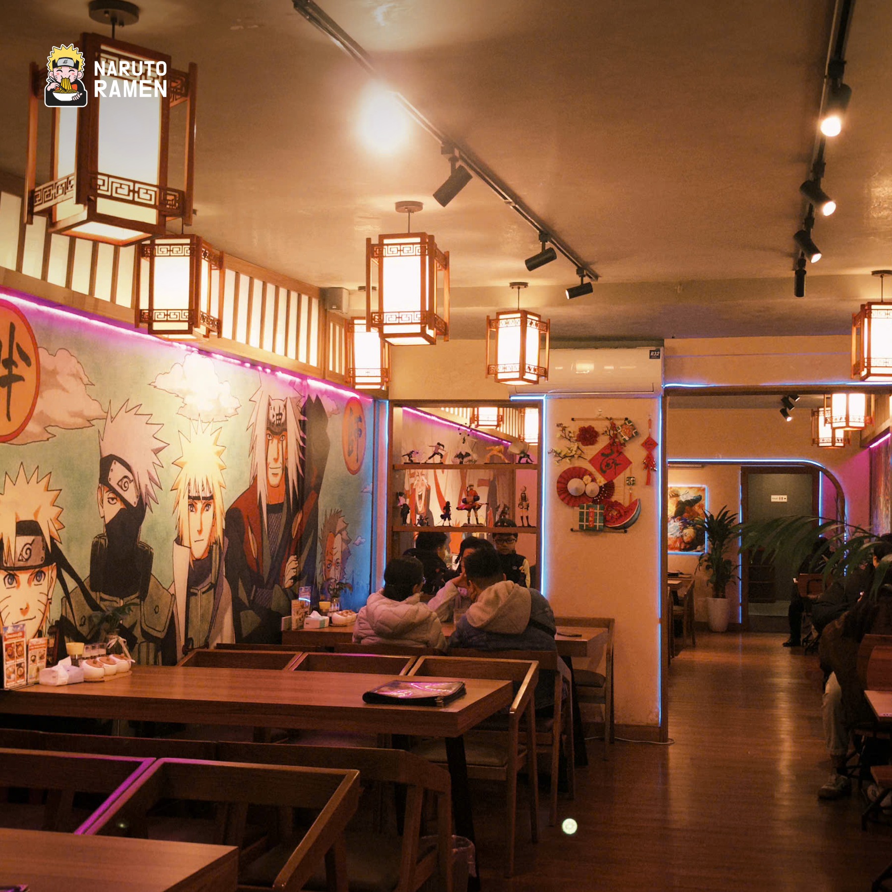 Tại đây, Naruto Ramen Kim Mã Thượng mang một không gian ấm cúng, đậm chất Nhật với tường gỗ, đèn lồng, và tranh vẽ huyền thoại. Những phân cảnh huyền thoại được tái hiện lại bằng nét vẽ tay đầy cảm xúc, không đơn thuần là trang trí – mà là cả một bầu trời tuổi thơ ùa về: