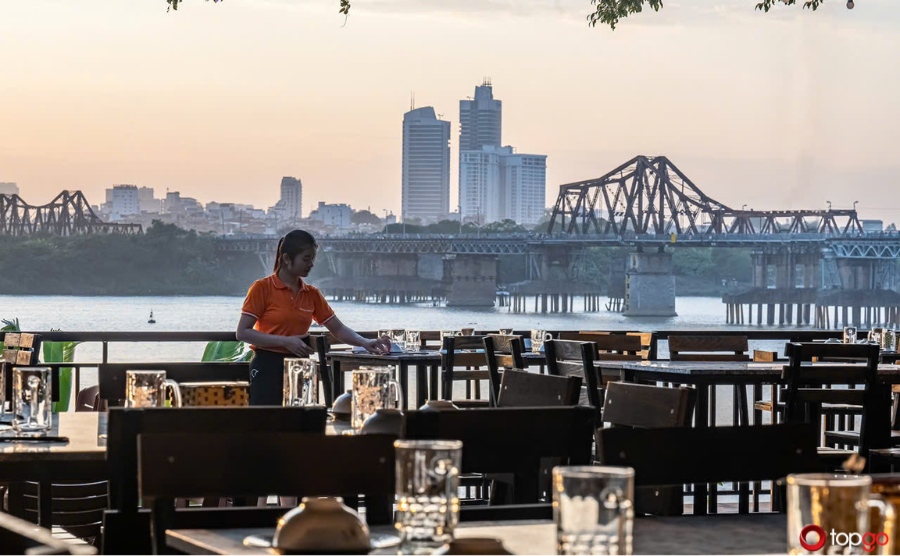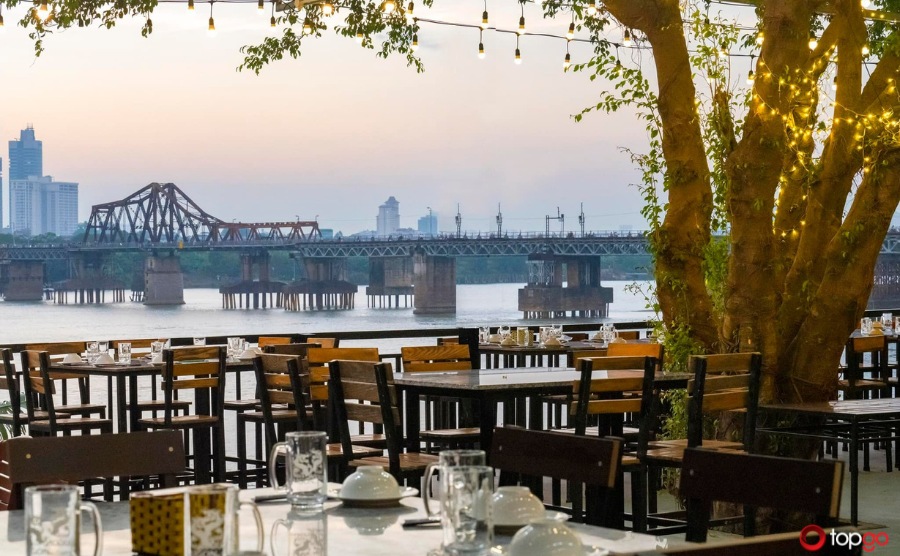 Không chỉ có view hướng sông, Nhà hàng Ẩm Thực Sông Hồng còn sở hữu vị trí tuyệt đẹp. Nhìn ra hai cây cầu nổi tiếng của thủ đô. Cầu Long Biên với nét cổ kính, gắn liền cùng lịch sử. Đối lập với vẻ hiện đại của cầu Chương Dương, tạo nên bức tranh sống động.