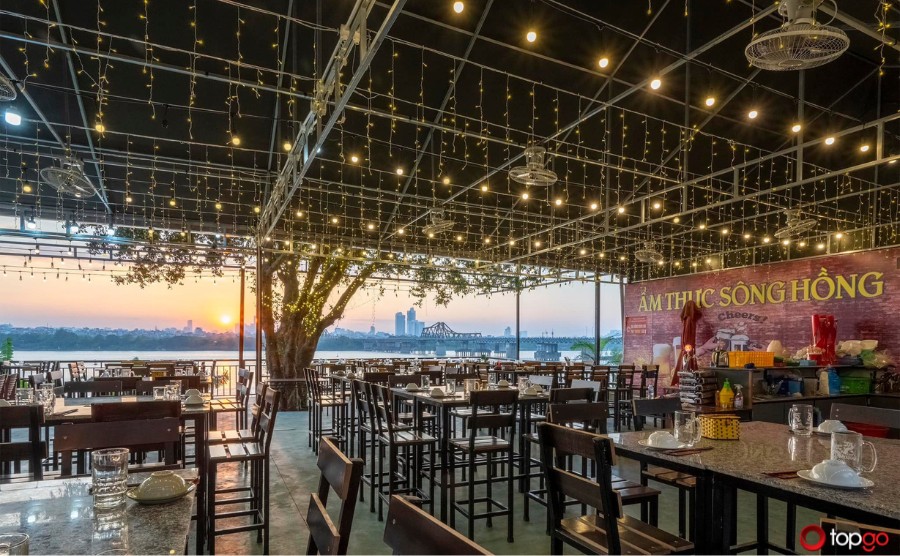 Khi mặt trời lặn, ánh hoàng hôn nhuộm cam tím cả bầu trời. Phản chiếu xuống mặt nước sông Hồng, mang đến cảm giác bình yên đến khó tả. Buổi tối, khi ánh đèn từ hai cây cầu kết hợp cùng hệ thống chiếu sáng lung linh của nhà hàng. Khung cảnh trở nên lãng mạn và huyền ảo.