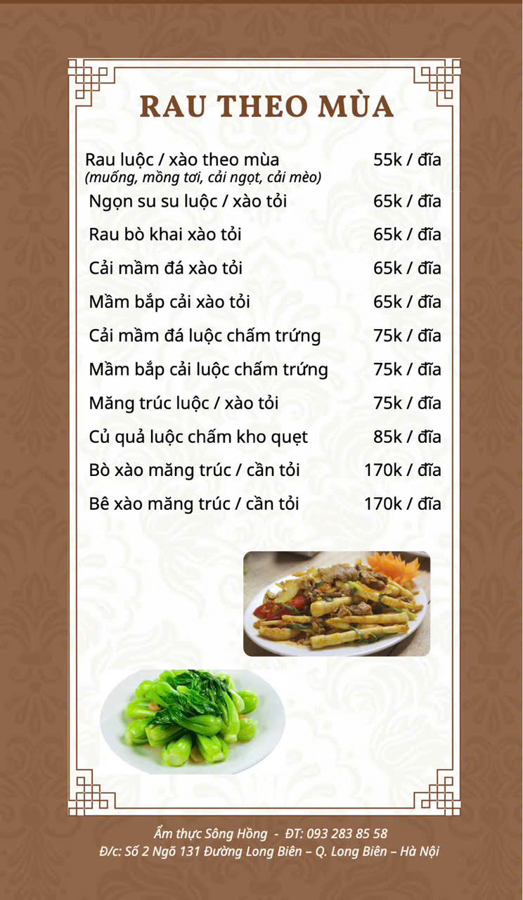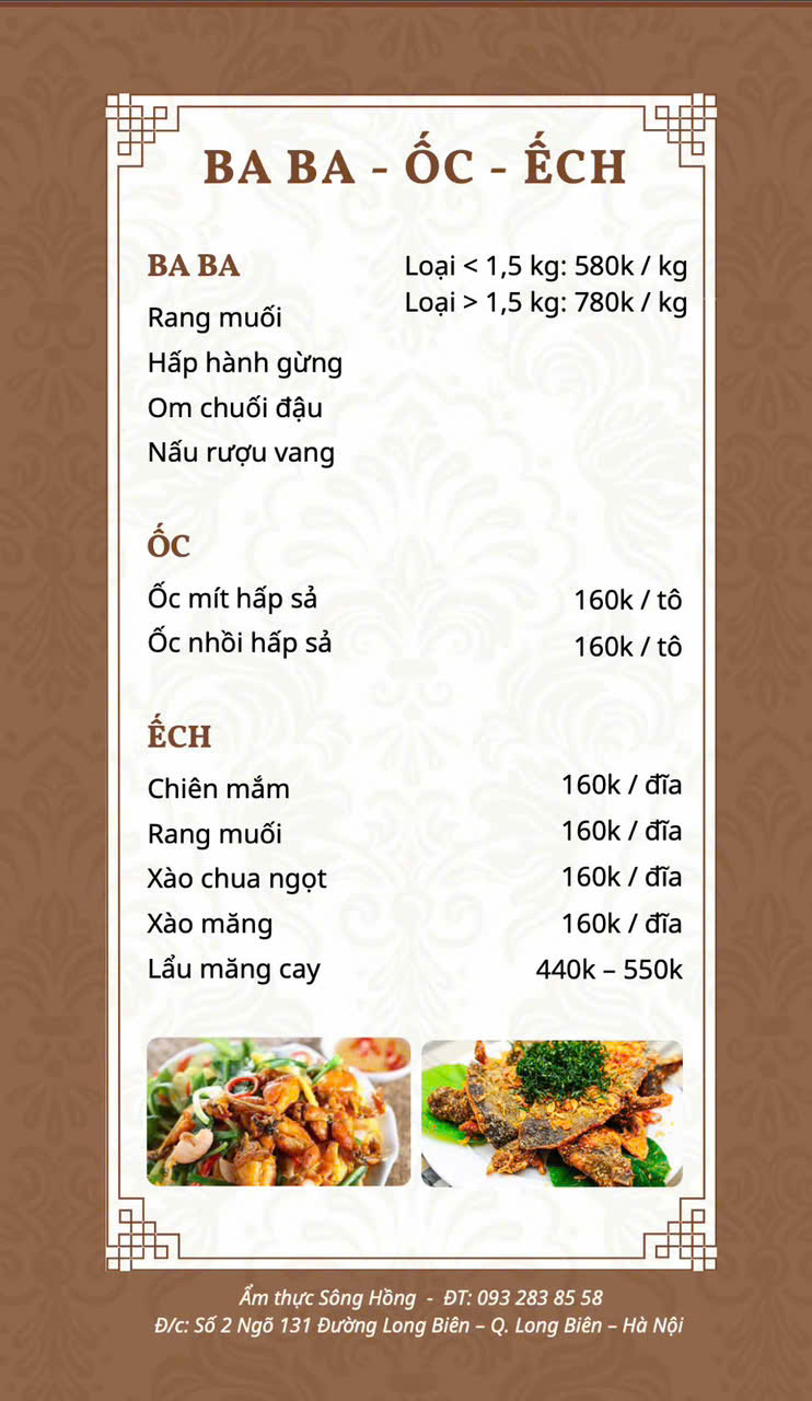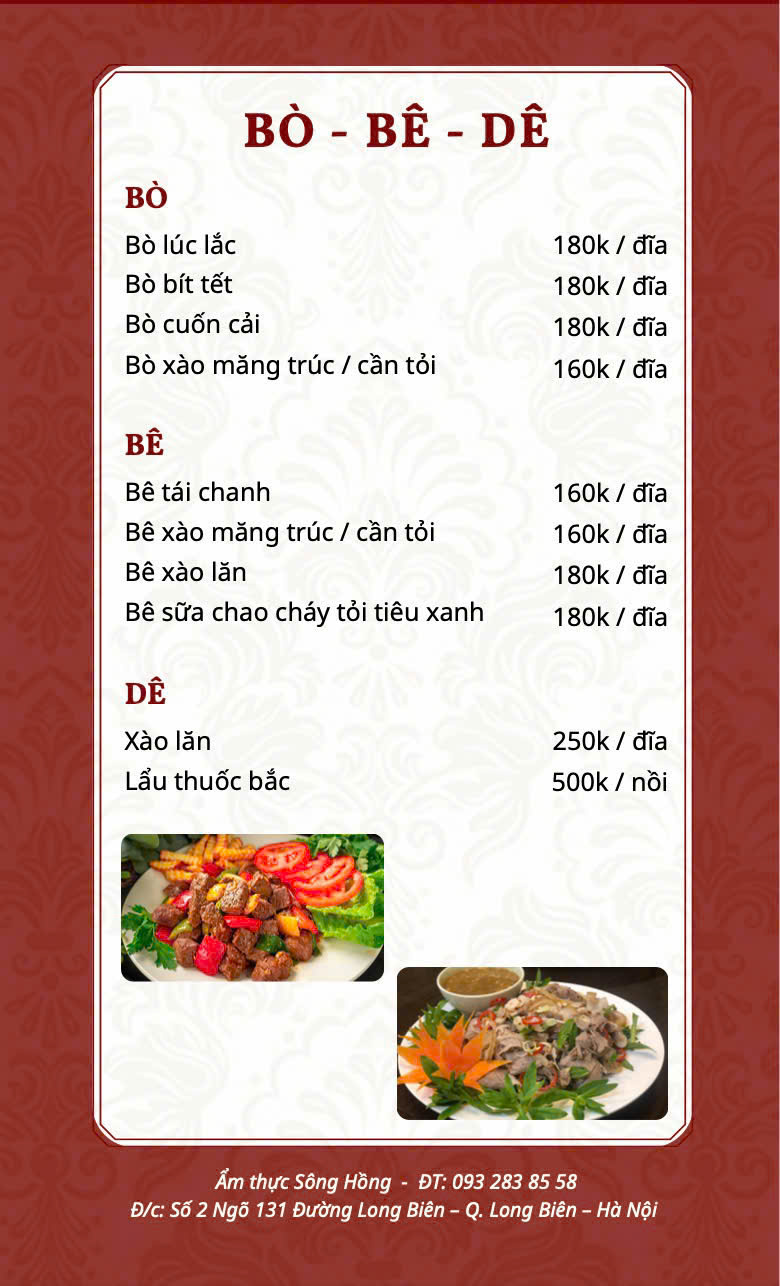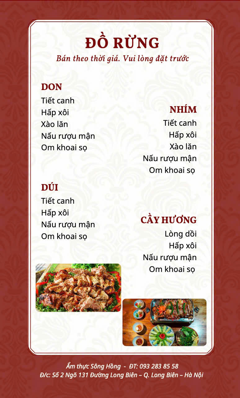 Nhà hàng Ẩm Thực Sông Hồng là địa chỉ quen thuộc của những ai yêu thích không gian ven sông và những món ăn đậm chất đồng quê. Với vị trí đắc địa ngay bên bờ sông Hồng, nhà hàng mang lại cho thực khách trải nghiệm vừa gần gũi, vừa sang trọng. Tại đây, mỗi bữa ăn không chỉ là hành trình thưởng thức ẩm thực mà còn là khoảnh khắc thư giãn, kết nối và tận hưởng vẻ đẹp của thiên nhiên Hà Nội.