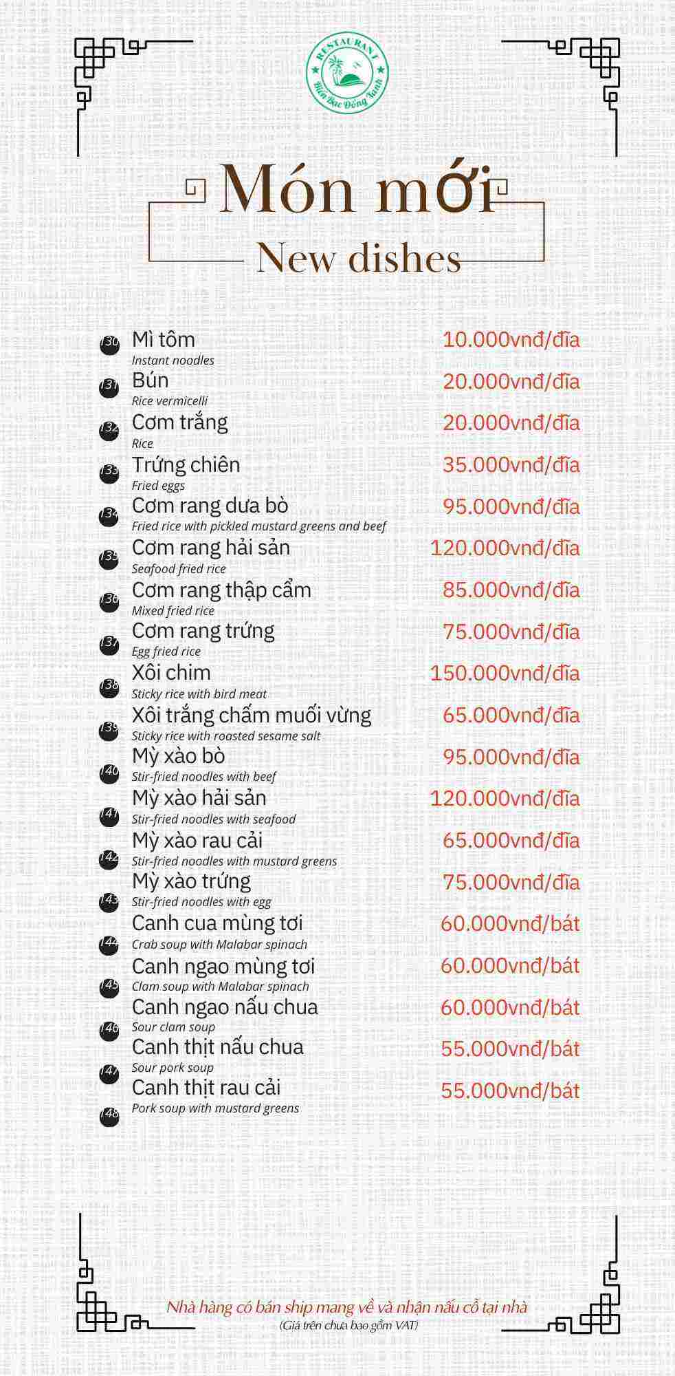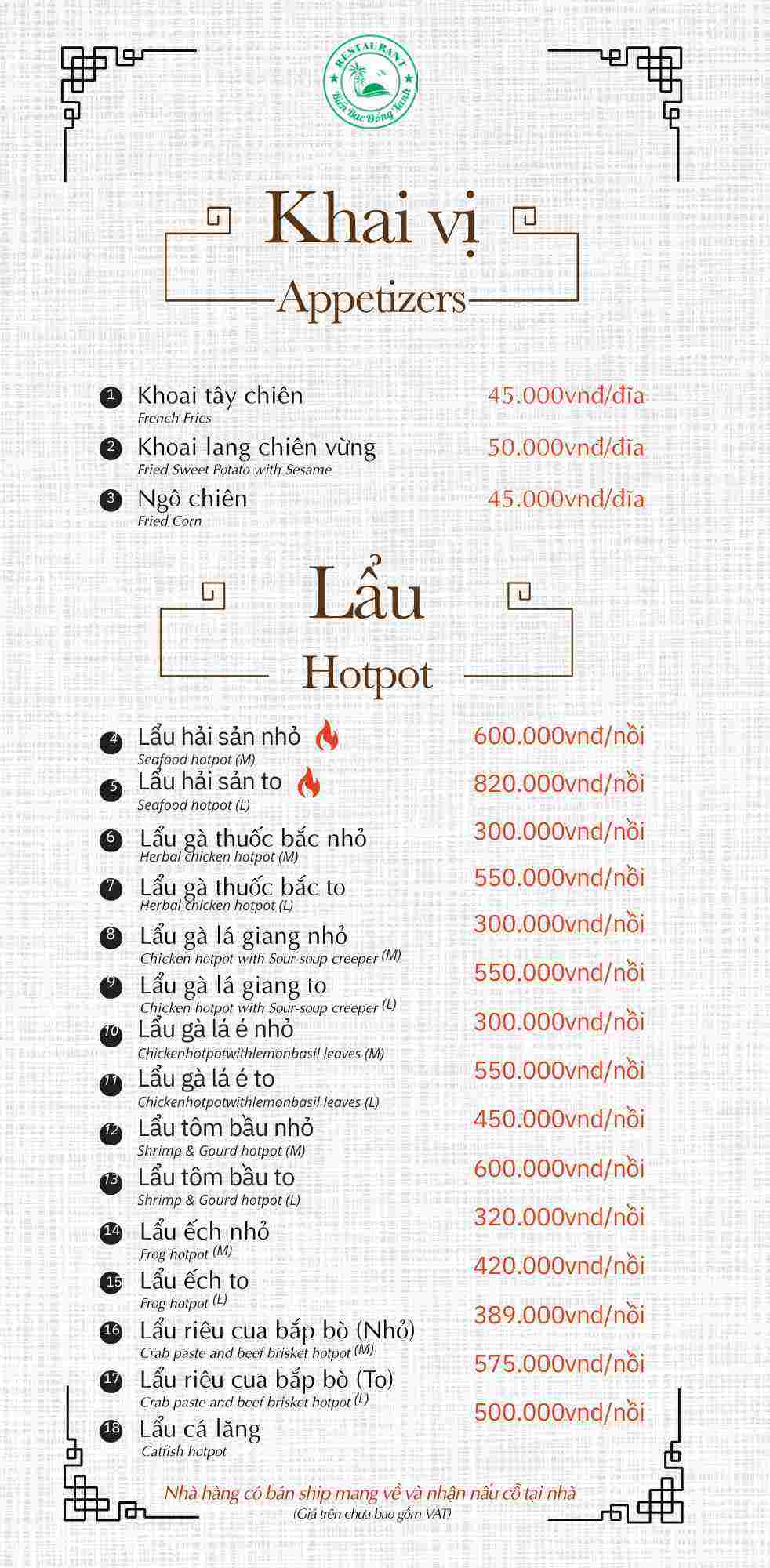 Menu Đa Dạng Với Hương Vị Đồng Quê Độc Đáo