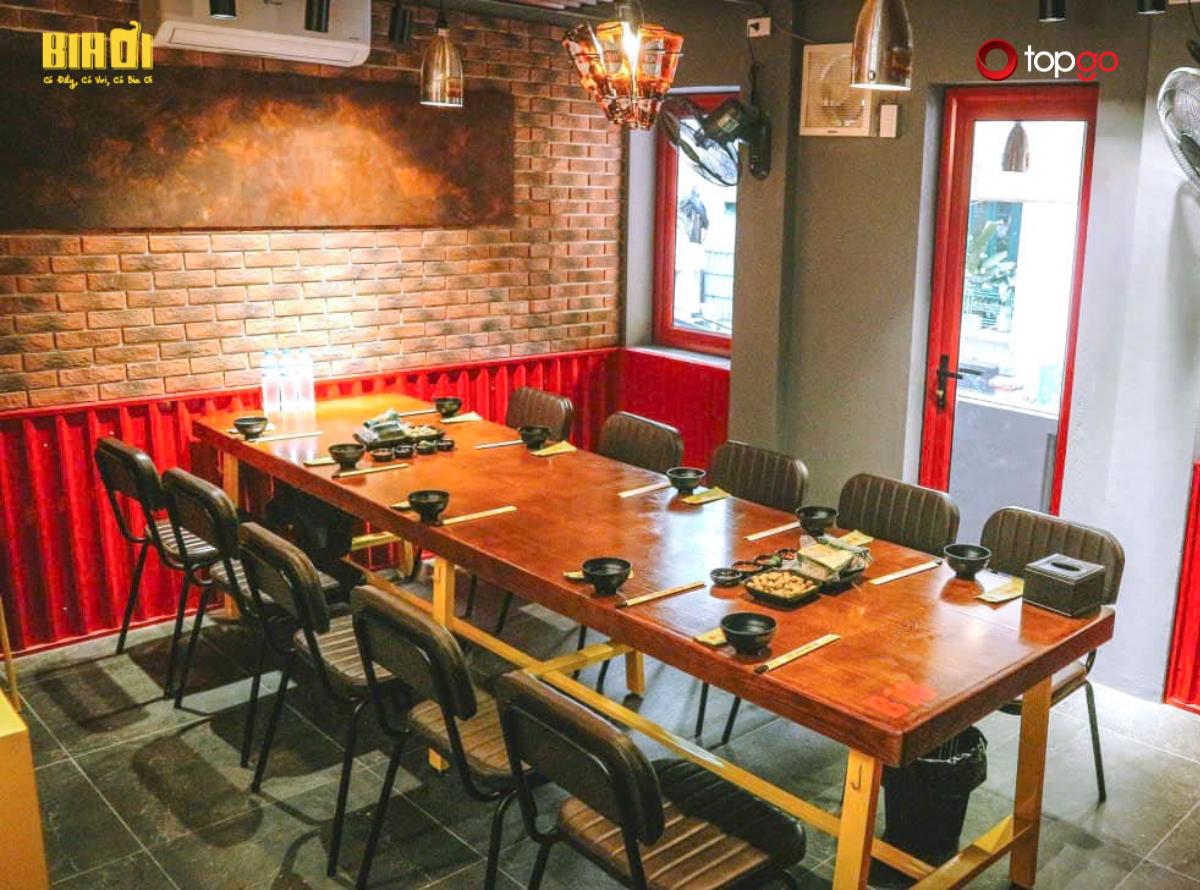 Ngoài khu bàn chung, Nhà hàng Biiia Ơi Vũ Trọng Phụng còn có phòng riêng dành cho những nhóm khách muốn có không gian riêng tư. Phòng riêng có thể phục vụ khoảng 20 khách. Đây là lựa chọn phù hợp cho các buổi sinh nhật, họp nhóm hoặc gặp gỡ đối tác.