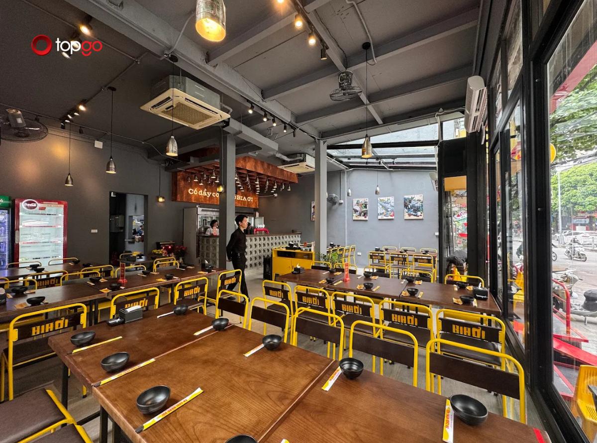 Bàn ghế gỗ được sắp xếp gọn gàng. Các khu vực ngồi được bố trí hợp lý để thực khách dễ dàng di chuyển. Điều này giúp không gian luôn giữ được sự thông thoáng, ngay cả khi nhà hàng đông khách. Ánh sáng trong nhà hàng sử dụng tông màu ấm. Điều này tạo cảm giác dễ chịu khi dùng bữa. Các chi tiết trang trí được lựa chọn đơn giản nhưng tinh tế.
