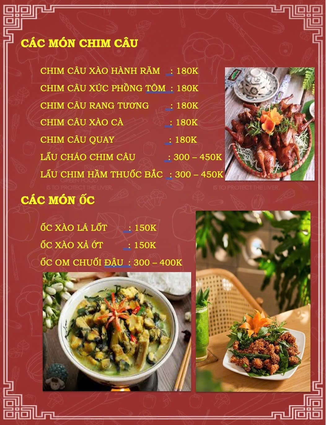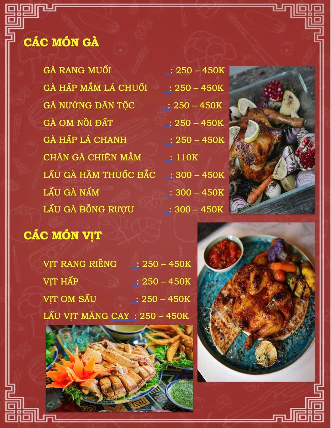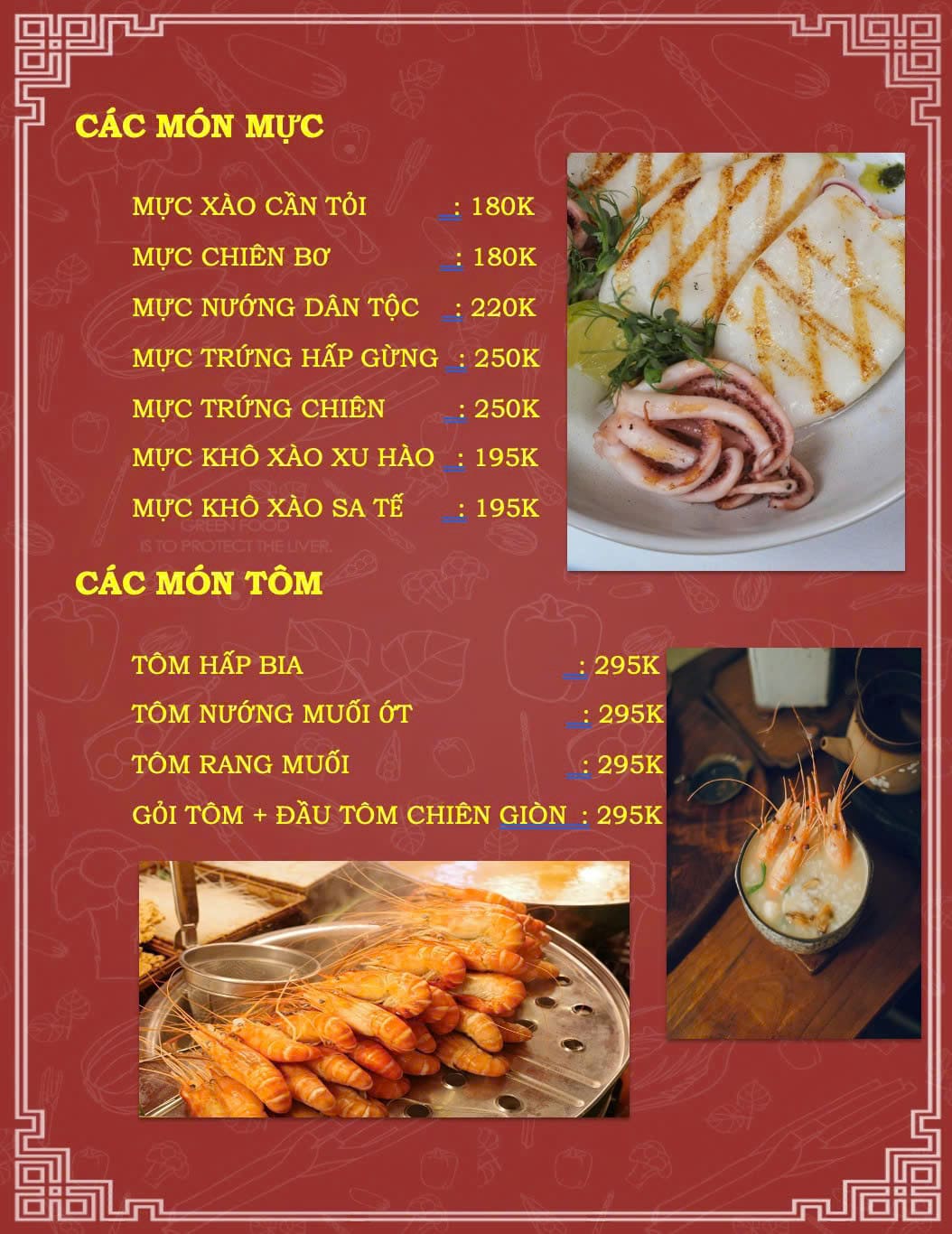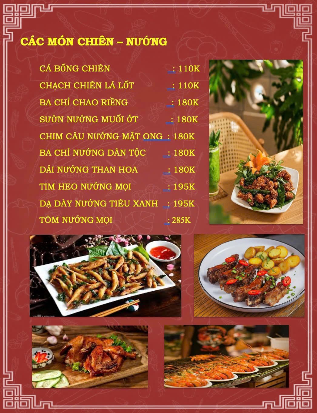 - Giá trung bình: 50.000 – 150.000 đồng/người (mâm cơm 129.000 – 360.000 đồng); 120.000 – 300.000 đồng/người (món nhậu)