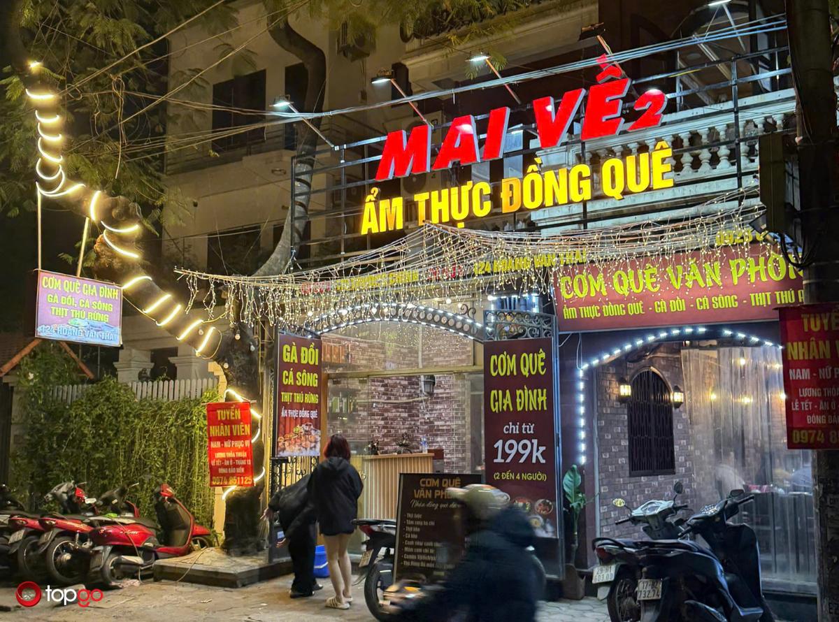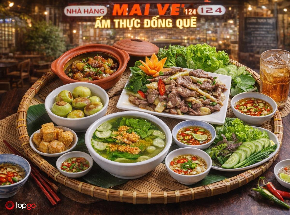 Nhà hàng Cơm Quê Mai Về là điểm đến lý tưởng cho những ai yêu hương vị ẩm thực Việt truyền thống, mộc mạc và gần gũi. Nhà hàng mang đến các món cơm quê đậm đà vị nhà, từ canh cua, cà pháo, rau muống xào tỏi đến các món kho, món rang quen thuộc, được chế biến theo phong cách gia đình, giữ trọn vị ngon tự nhiên. Không gian ấm cúng, giản dị, gợi cảm giác thân thuộc như bữa cơm sum vầy, rất phù hợp cho bữa ăn gia đình, gặp gỡ bạn bè hay tiếp khách nhẹ nhàng giữa lòng Hà Nội.