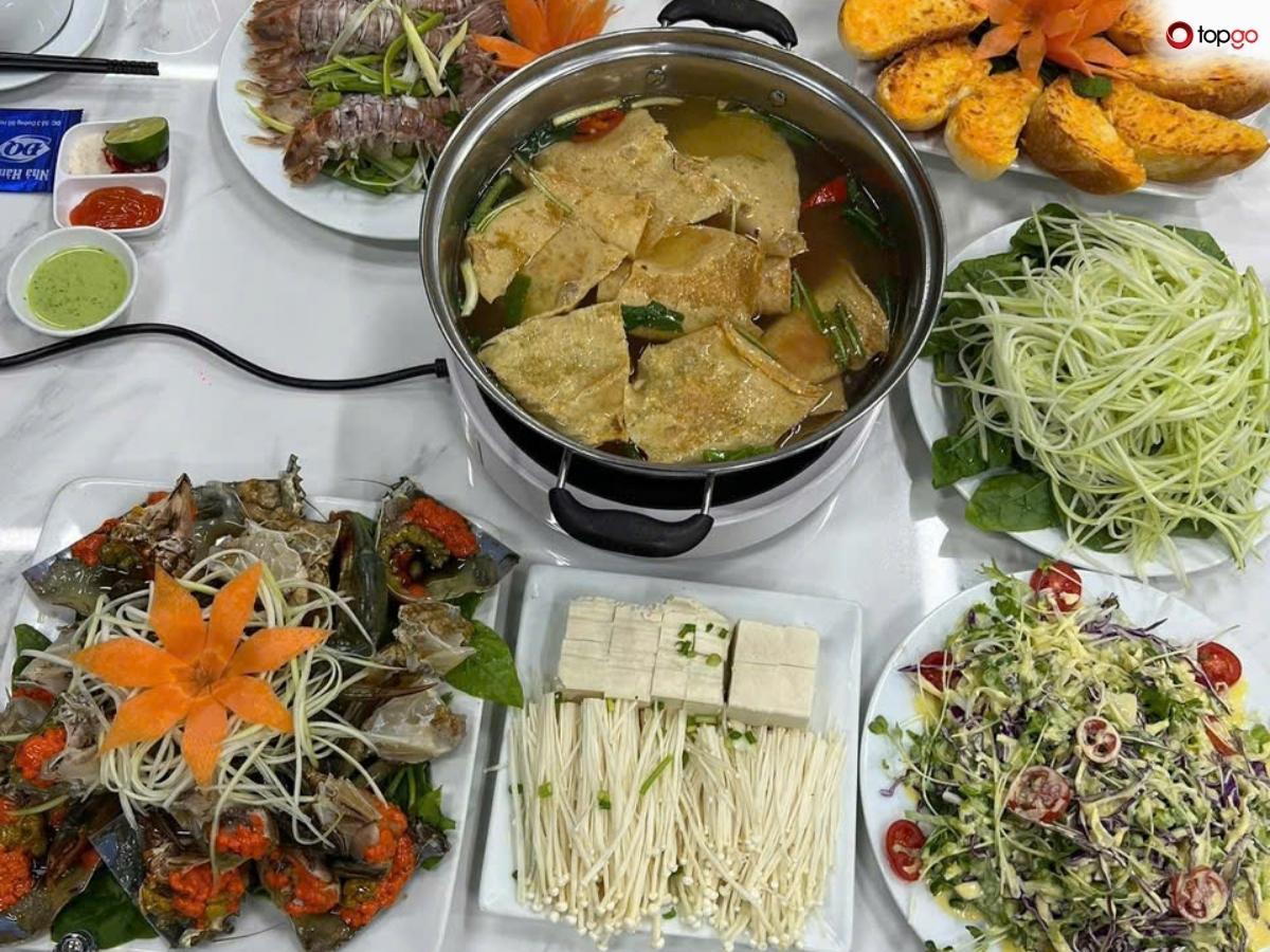 Thực đơn món Việt và hải sản dễ ăn, phù hợp nhiều đối tượng. Phong cách phục vụ thực tế giúp bữa ăn diễn ra thoải mái và suôn sẻ.