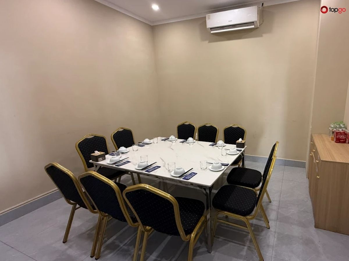 Không gian phòng riêng được thiết kế đơn giản, dễ bố trí bàn ghế theo nhu cầu. Nhà hàng có thể hỗ trợ sắp xếp linh hoạt để phù hợp với từng mục đích sử dụng.