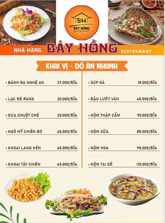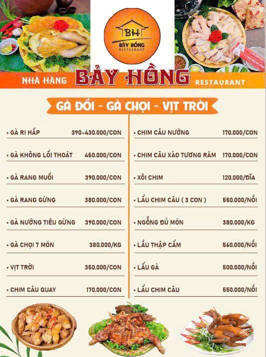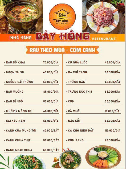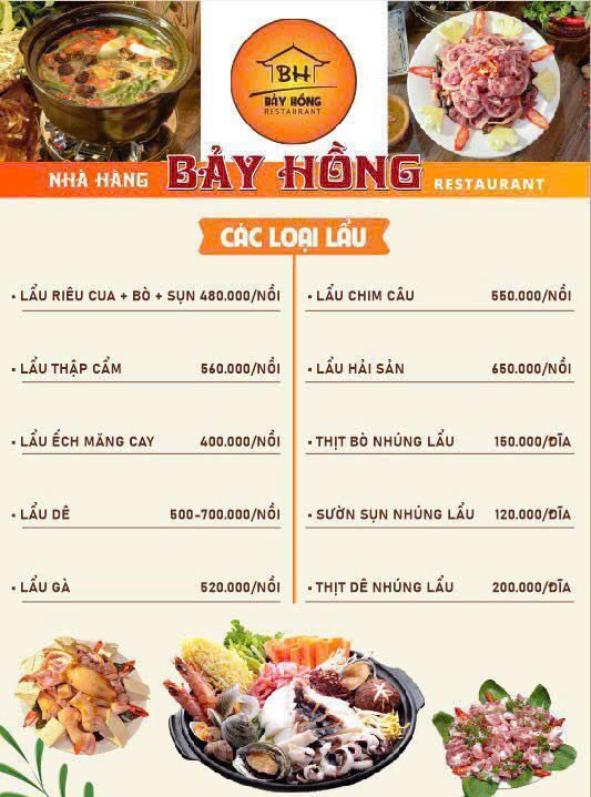 Với mức giá từ 170.000 đến 250.000 mỗi khách, nhà hàng mang đến chất lượng tốt mà vẫn phù hợp ngân sách. Đây là lý do nhiều gia đình và doanh nghiệp chọn Bảy Hồng cho các dịp quan trọng.