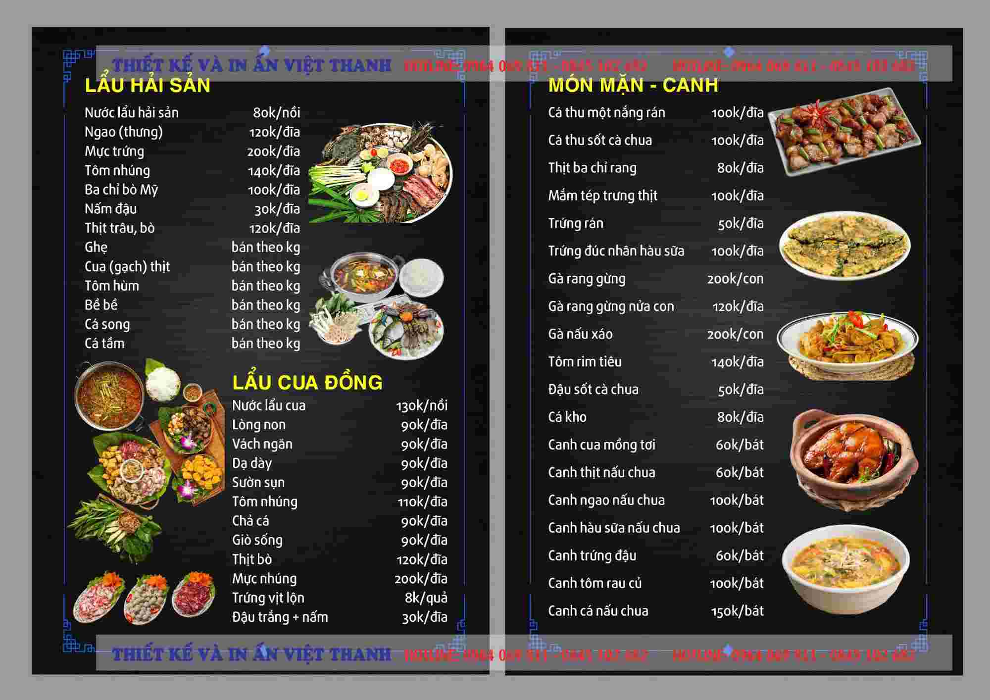 Thực đơn đa dạng – Hải sản và món đồng quê hấp hơi