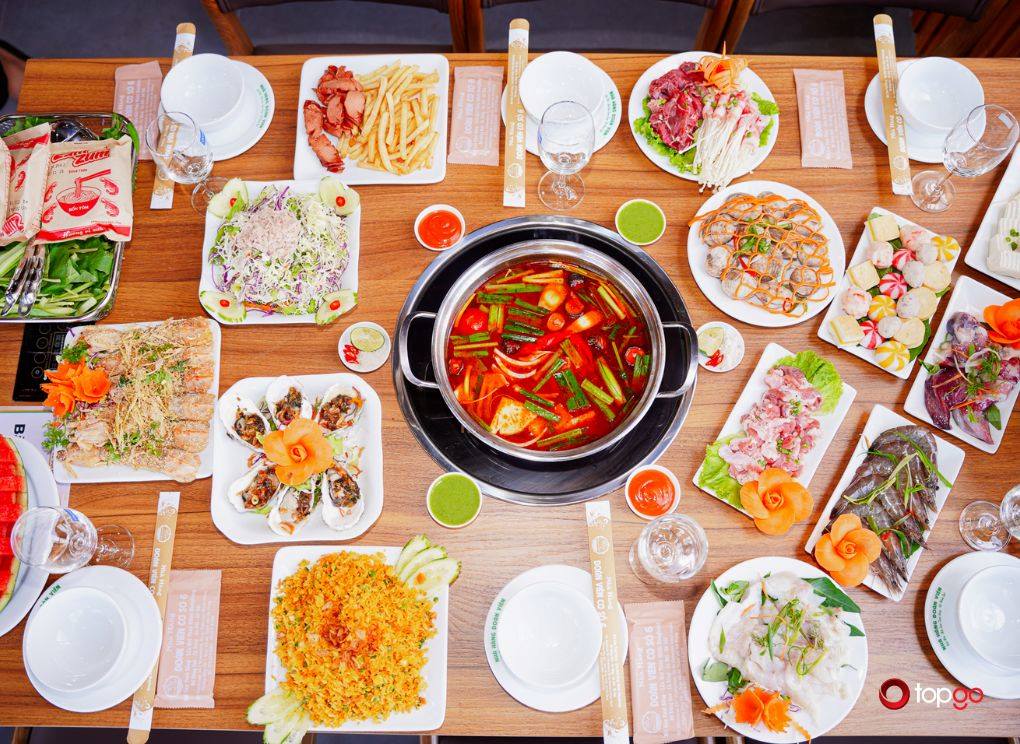 Nhà hàng Đoàn Viên Golden Point luôn sẵn sàng đón khách trong mọi dịp. Nhà hàng mong mang đến cho khách những khoảnh khắc nhẹ nhàng trong từng bữa ăn. Đoàn Viên Golden Point luôn đặt sự hài lòng của khách lên hàng đầu. Vì thế, mỗi bữa ăn đều được chuẩn bị bằng cả sự tận tâm. Đừng quên gọi 0913515351 – TopGo để được tư vấn miễn phí và đặt bàn nhanh chóng.