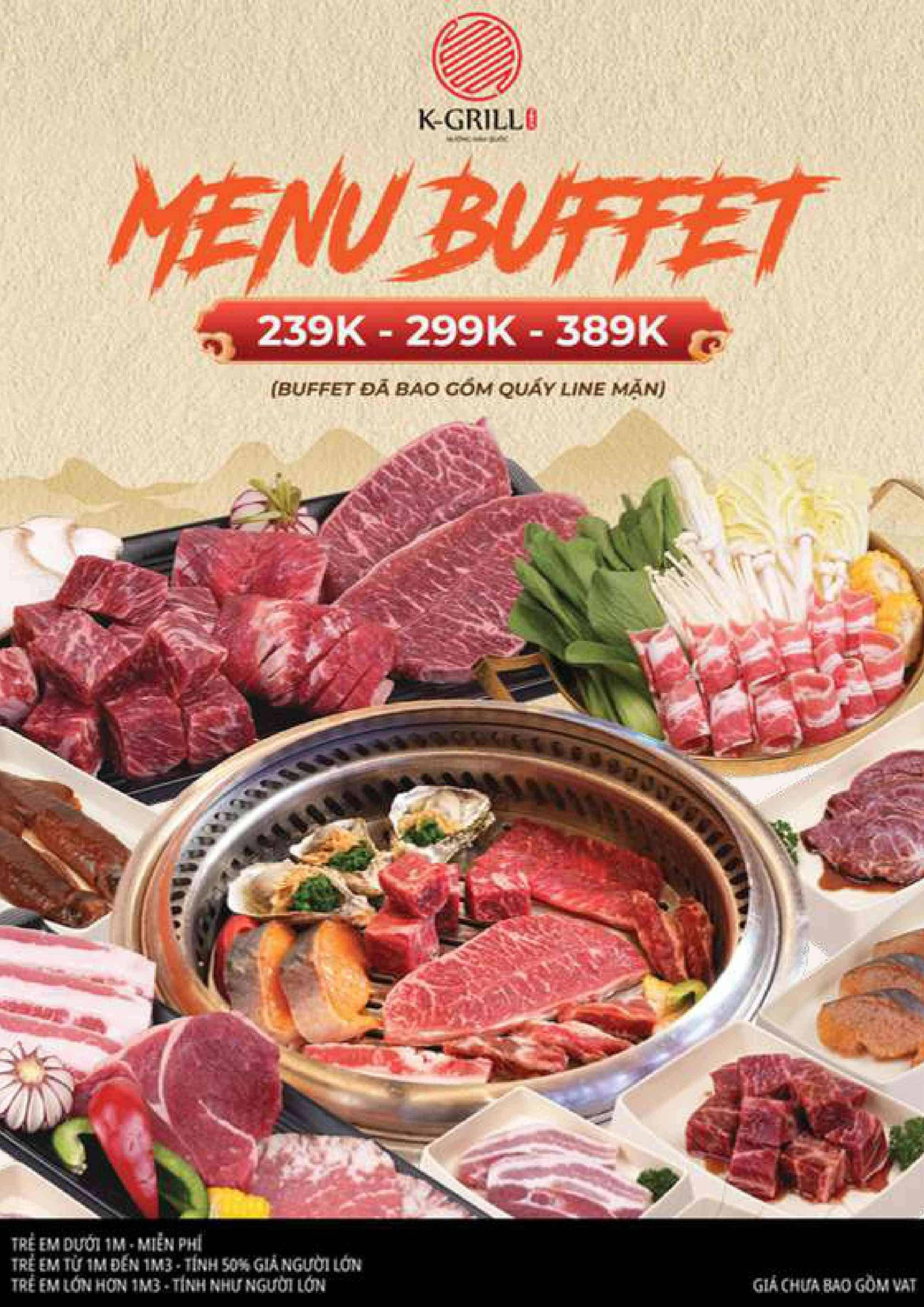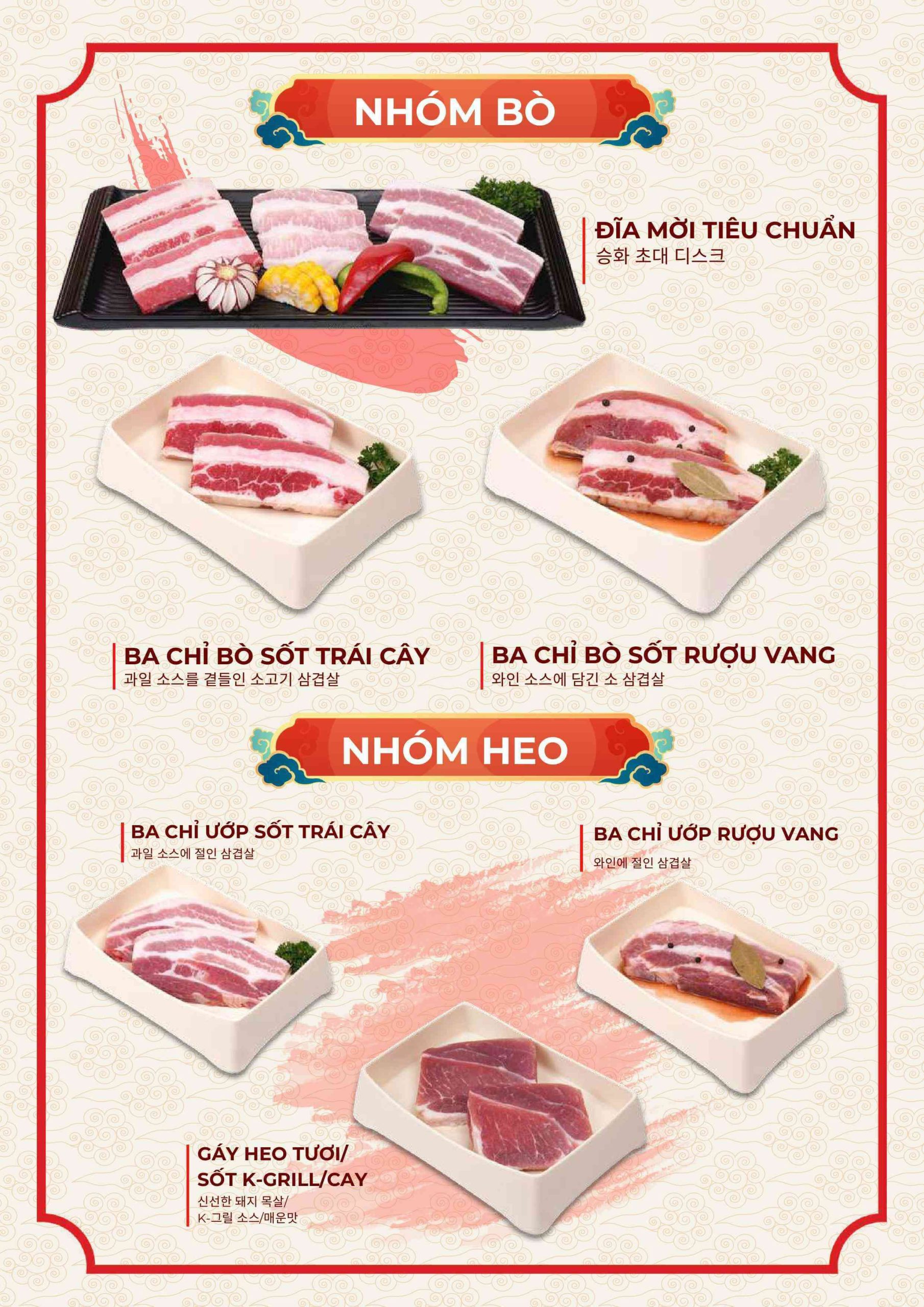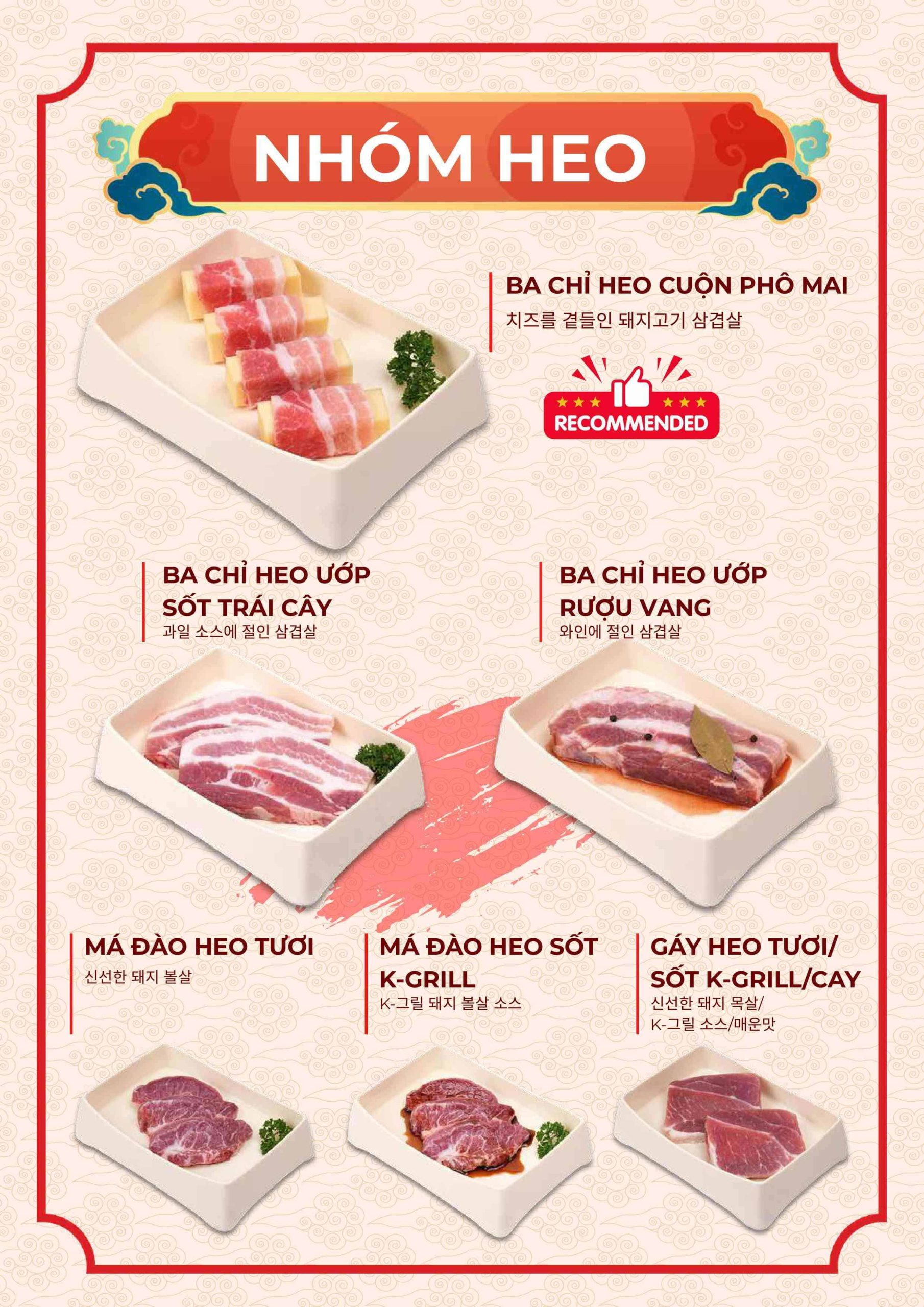 Thực đơn tại Nhà hàng K-Grill đi theo hướng quen thuộc nhưng được tối ưu cho trải nghiệm nhóm.