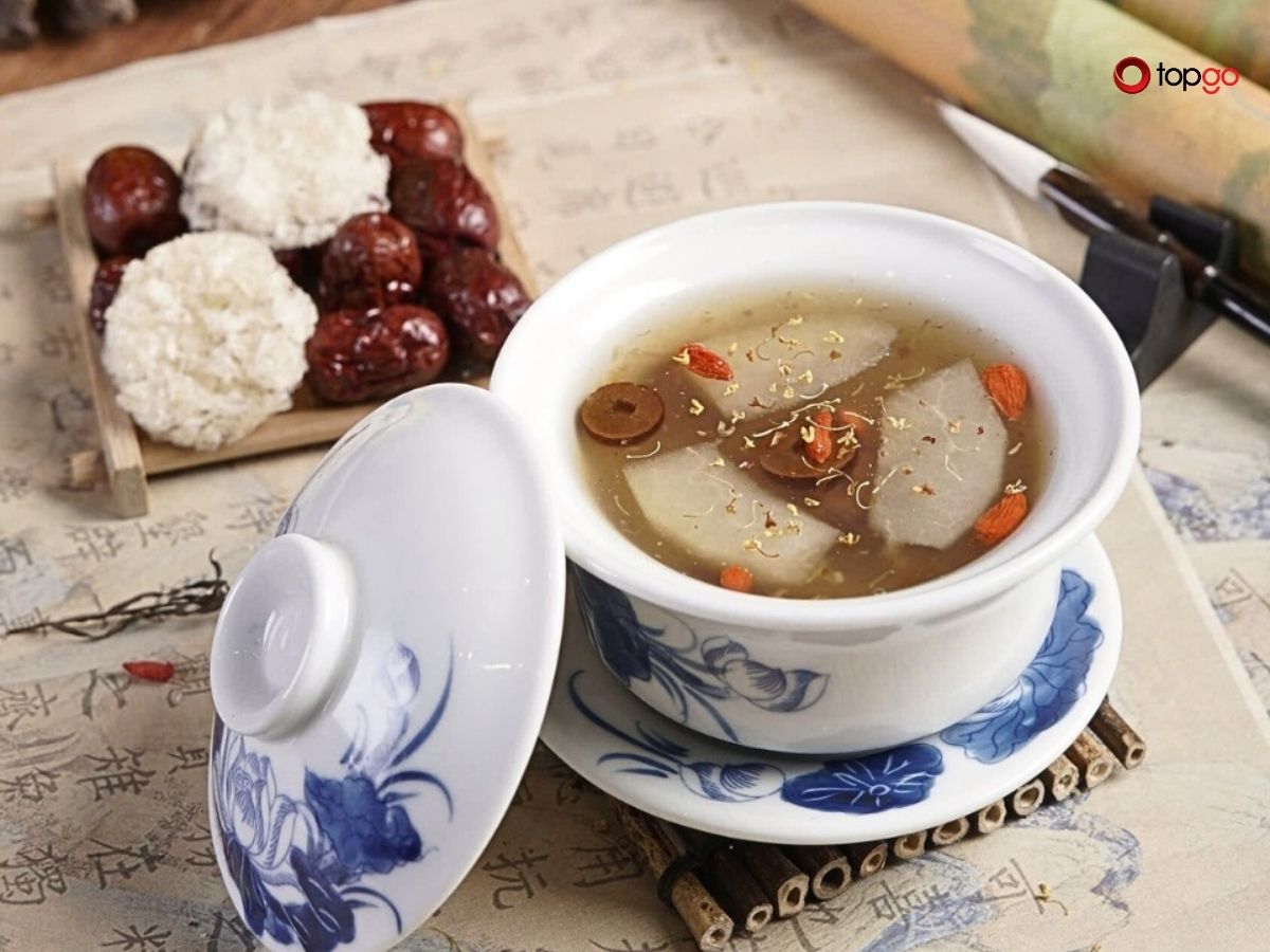 Nguyên liệu tại Ming Zhu được tuyển chọn theo tiêu chuẩn nghiêm ngặt. Nhà hàng ưu tiên các dược liệu quen thuộc trong Đông y. Đăng sâm giúp hỗ trợ khí huyết và tăng sức đề kháng. Táo đỏ mang lại vị ngọt dịu và dễ tiêu hóa. Kỳ tử góp phần cân bằng thể trạng tự nhiên. Đông trùng hạ thảo được sử dụng đúng liều lượng phù hợp. Các loại hoa và thảo mộc giúp món ăn thêm hài hòa. Mọi nguyên liệu đều đảm bảo nguồn gốc rõ ràng.
