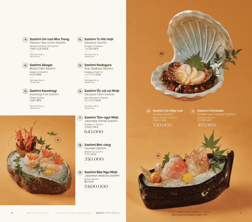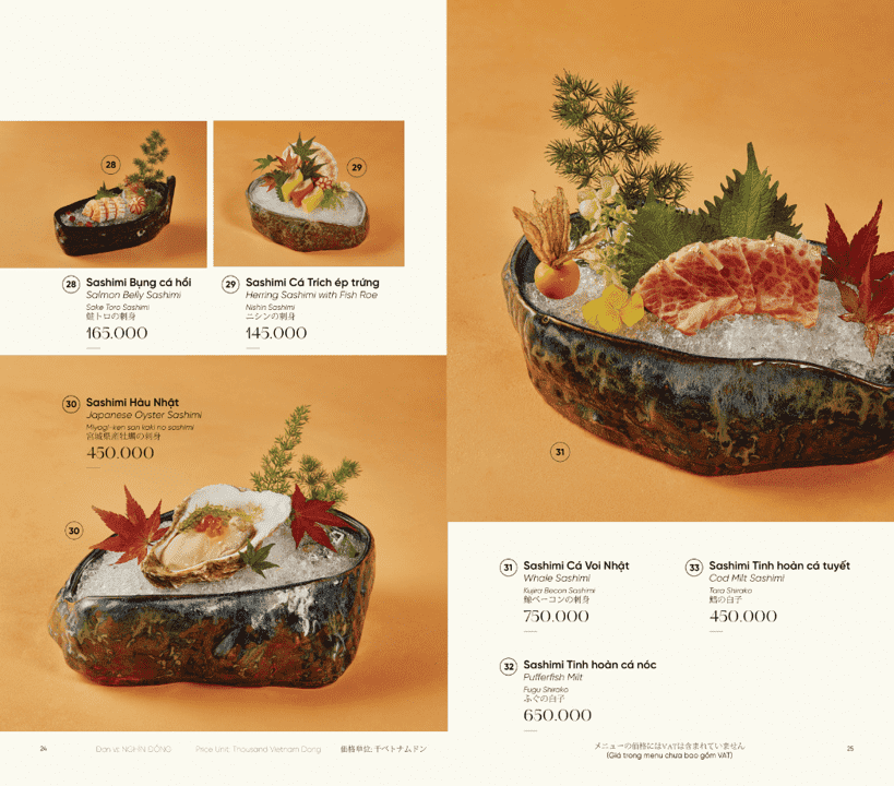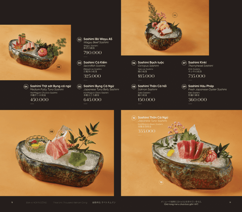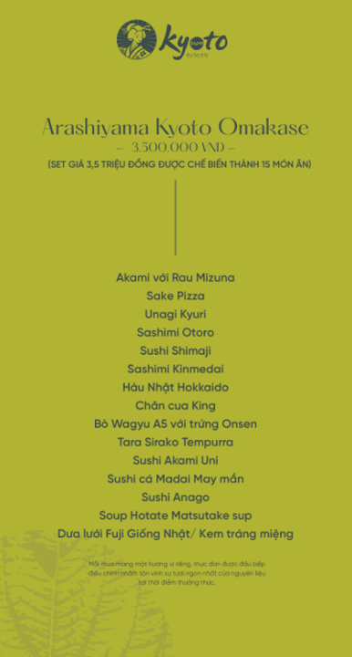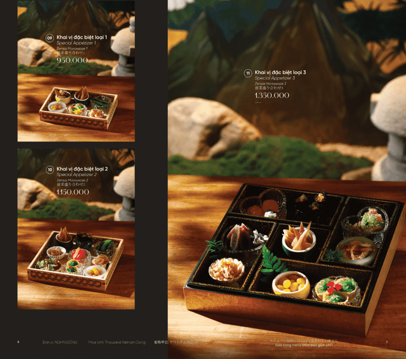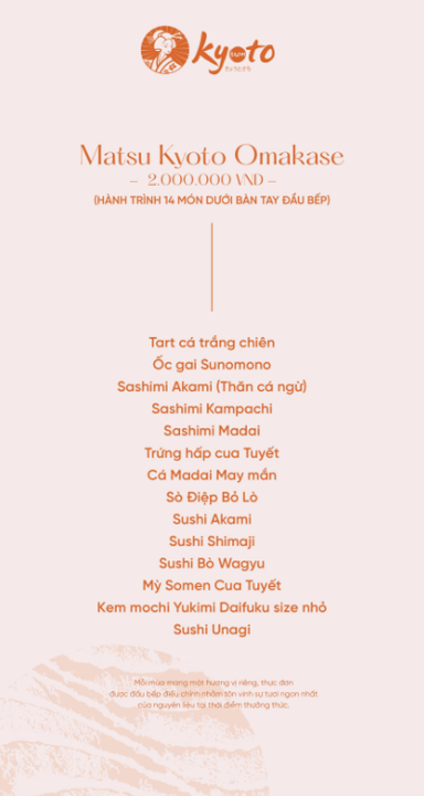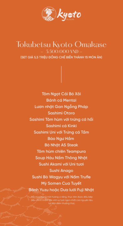 - Phong cách: Ẩm thực Nhật Bản cao cấp, Fine Dining