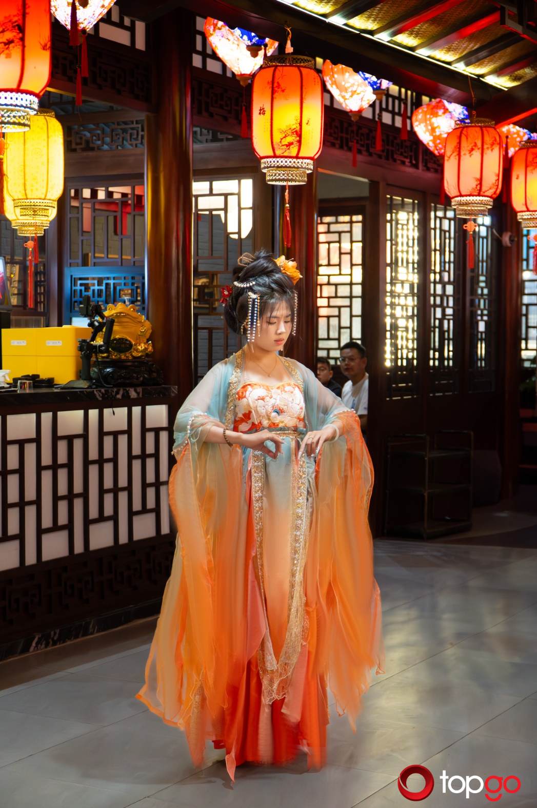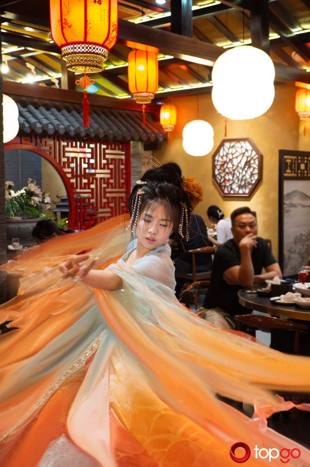 Không gian mang phong cách “dinh thự cổ” đã ấn tượng, nhưng điều khiến trải nghiệm tại Thục Hương Lầu thật sự khác biệt chính là các tiết mục biểu diễn đậm chất Trung Hoa:
