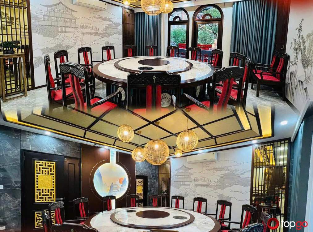 Ánh sáng vàng ấm được bố trí theo từng lớp, nhẹ nhàng lan tỏa trên vân gỗ, gạch gốm, họa tiết truyền thống và các chi tiết trang trí mang hơi thở phương Đông. Không gian là những câu chuyện Trung Hoa. Mỗi món đồ, mỗi đường nét đều được lựa chọn cẩn thận để thể hiện sự hài hòa giữa cổ điển và hiện đại. Từng bước chân đều mang đến một cảm giác khám phá, như thể bạn đang đi qua các gian phòng trong một phủ đệ xa xưa.