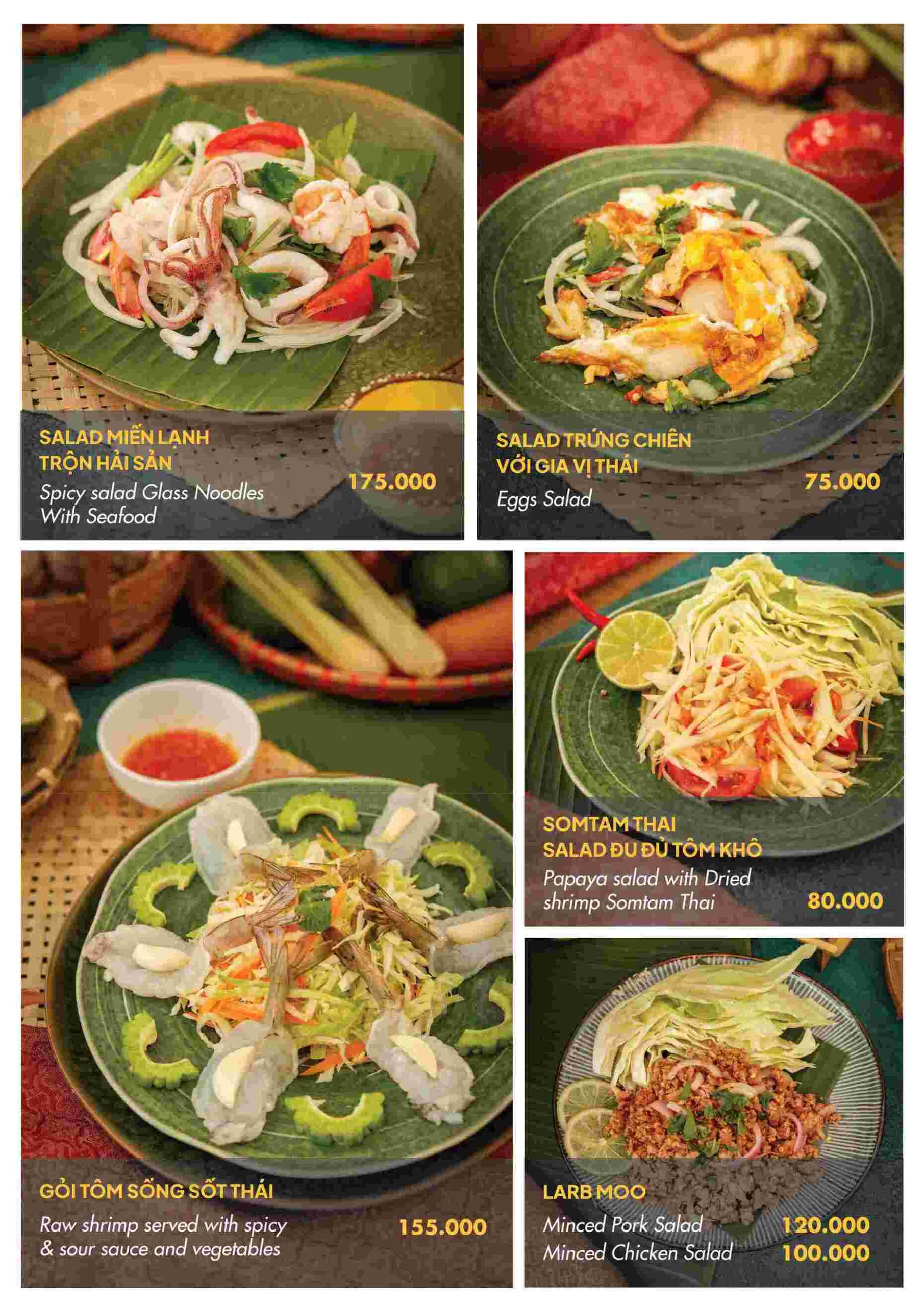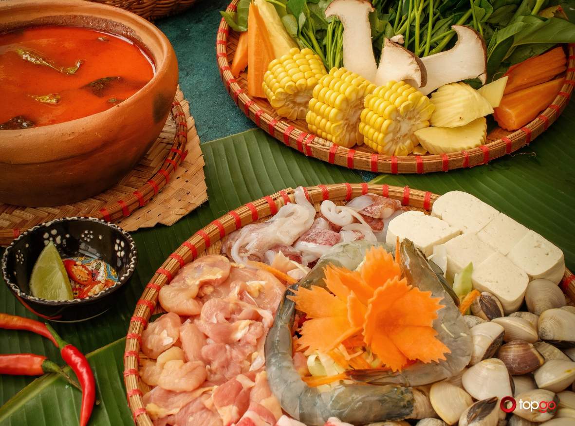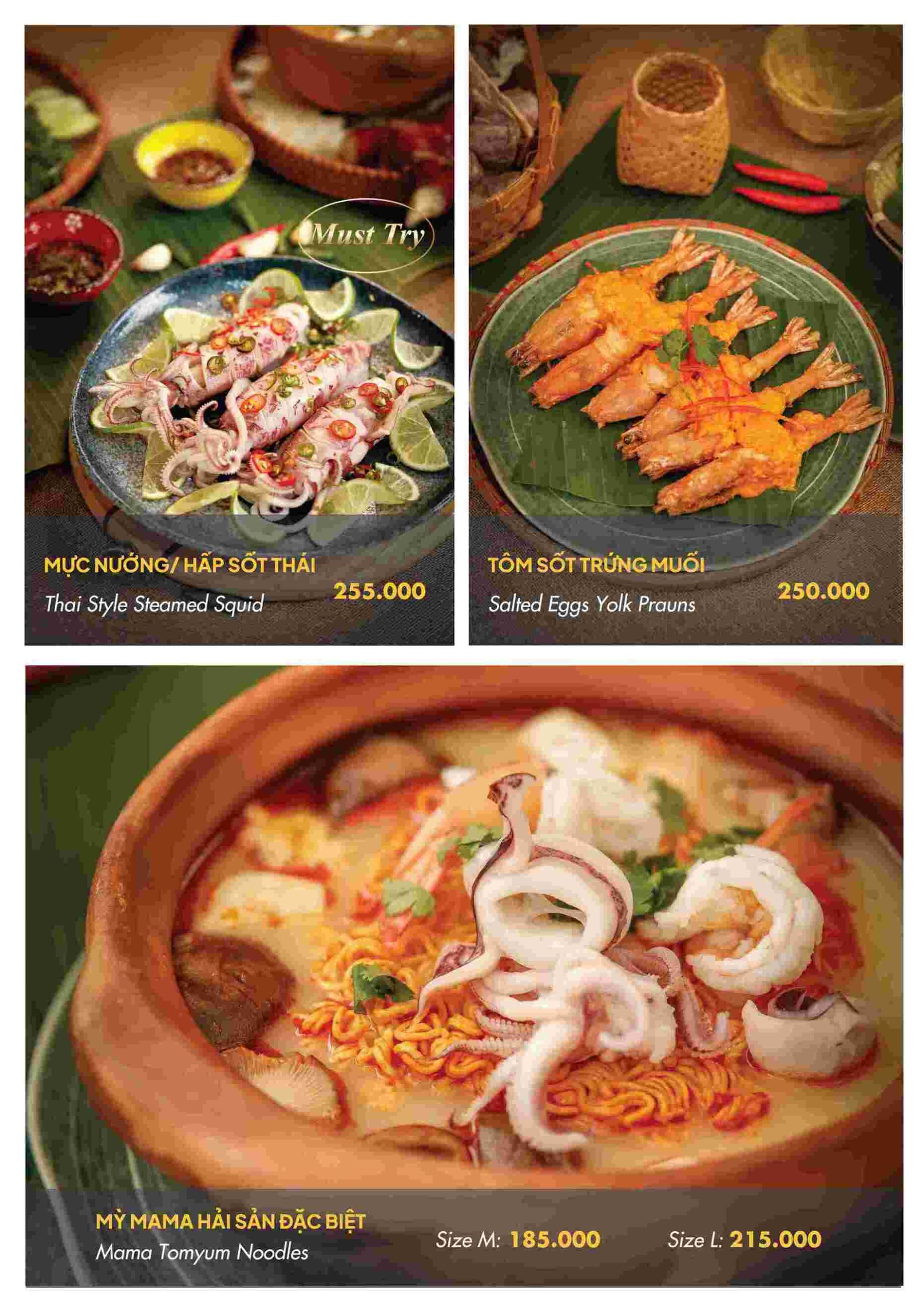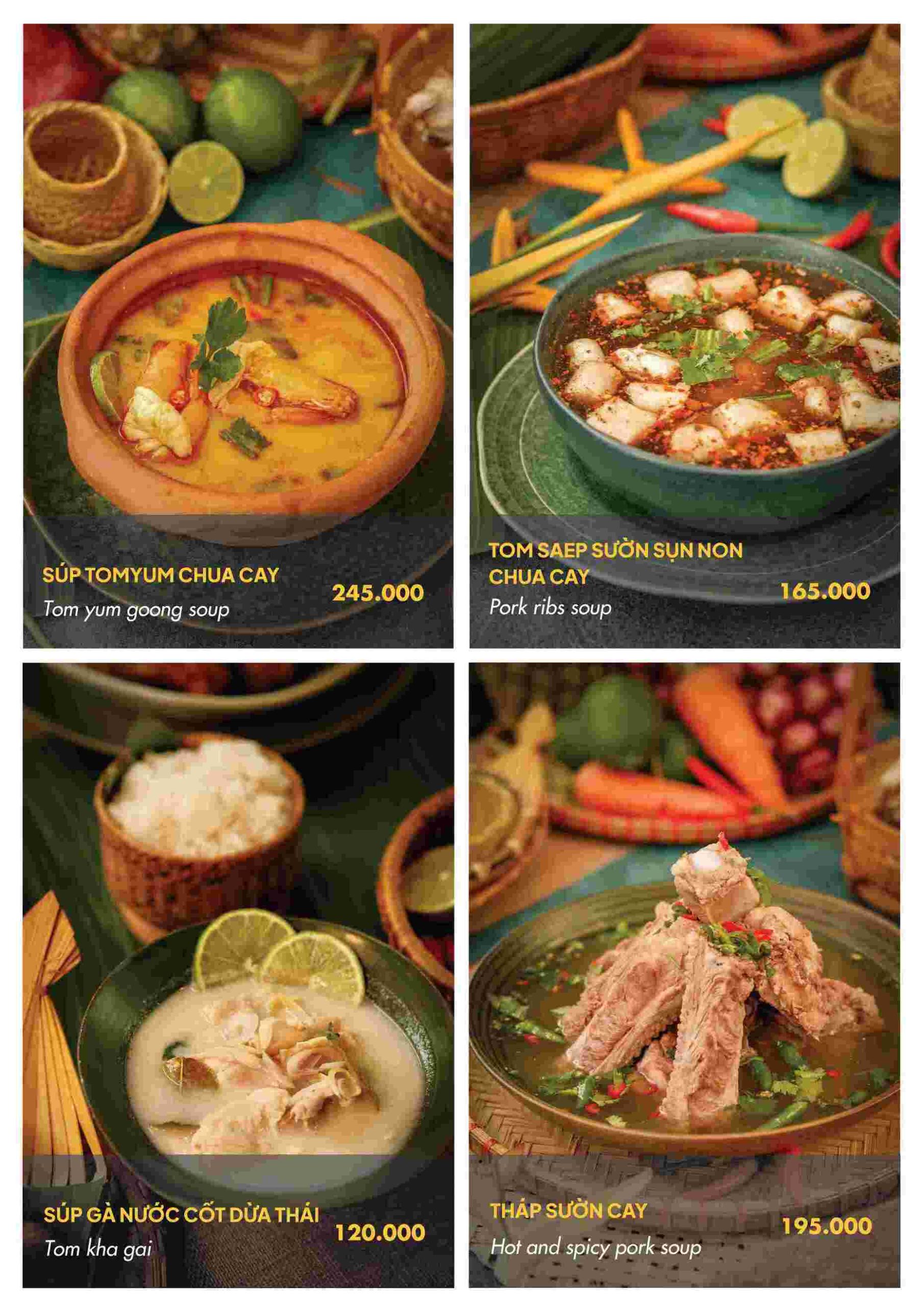 Các món nước như súp Tom Yum hay lẩu hải sản thập cẩm thể hiện rõ nét đặc trưng của ẩm thực Thái. Vị chua cay được tiết chế hợp lý, đủ đậm đà nhưng không quá gắt. Mỳ Mama hải sản là món quen thuộc, dễ dùng và thường được gọi cho những bữa ăn nhẹ nhàng.