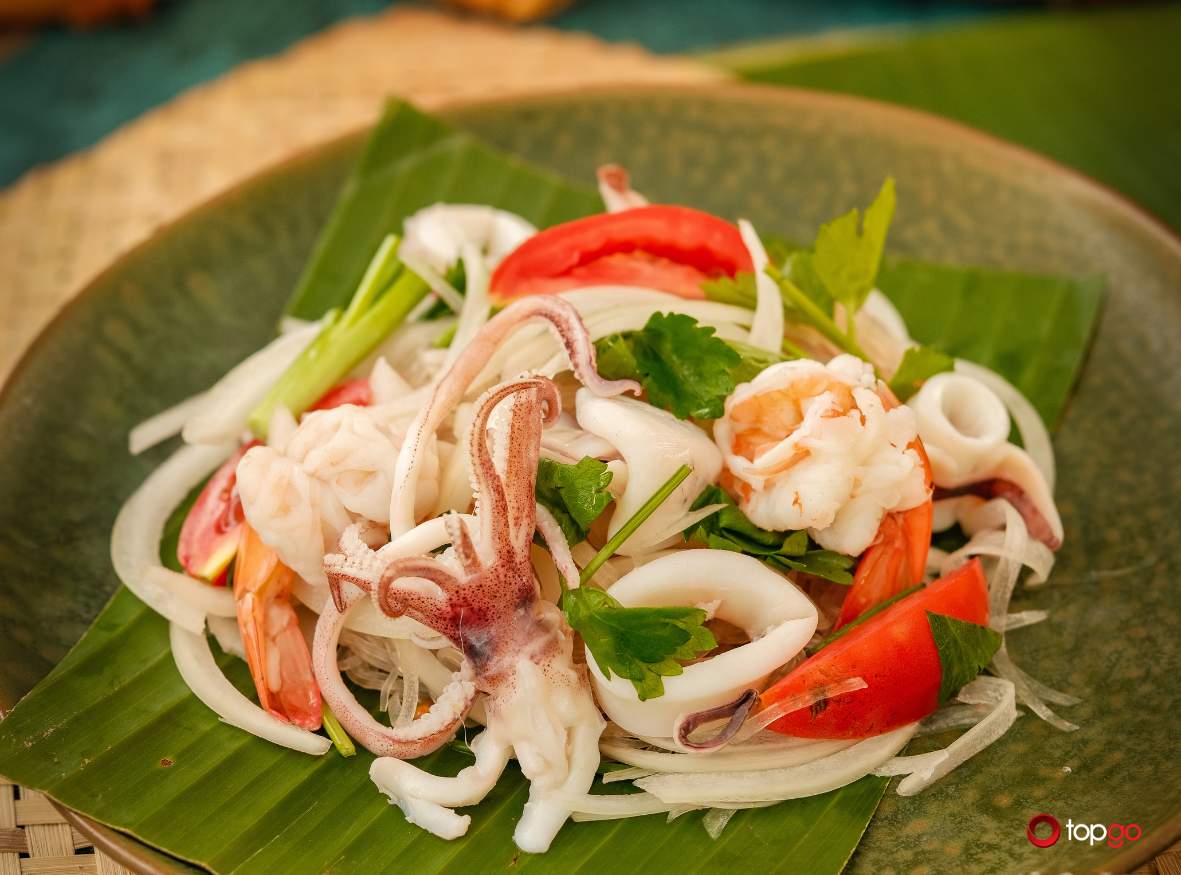 Mực hấp hoặc nướng sốt Thái là lựa chọn quen thuộc của nhiều bàn ăn. Nguyên liệu tươi, kết hợp cùng phần sốt đậm đà giúp món ăn vừa tròn vị vừa dễ chia sẻ. Đây là món thường được gọi để mở đầu bữa ăn.