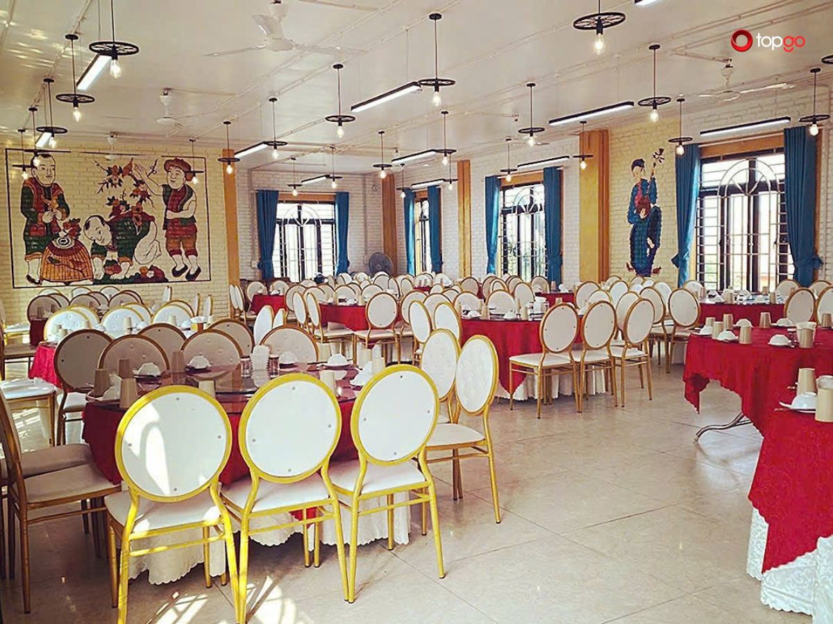 Nhà hàng nằm ngay khu vực Tràng An, một trong những điểm du lịch nổi tiếng của Ninh Bình. Sau khi tham quan, bạn có thể di chuyển đến đây mà không mất nhiều thời gian. Vị trí này rất phù hợp với khách du lịch, đặc biệt là các đoàn lớn cần một địa điểm ăn uống gần điểm tham quan. Việc không phải di chuyển xa giúp tiết kiệm thời gian và giữ được nhịp hành trình.