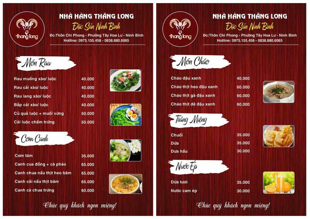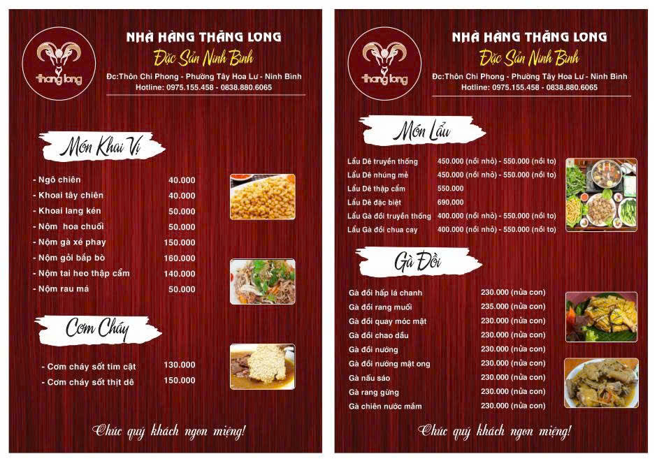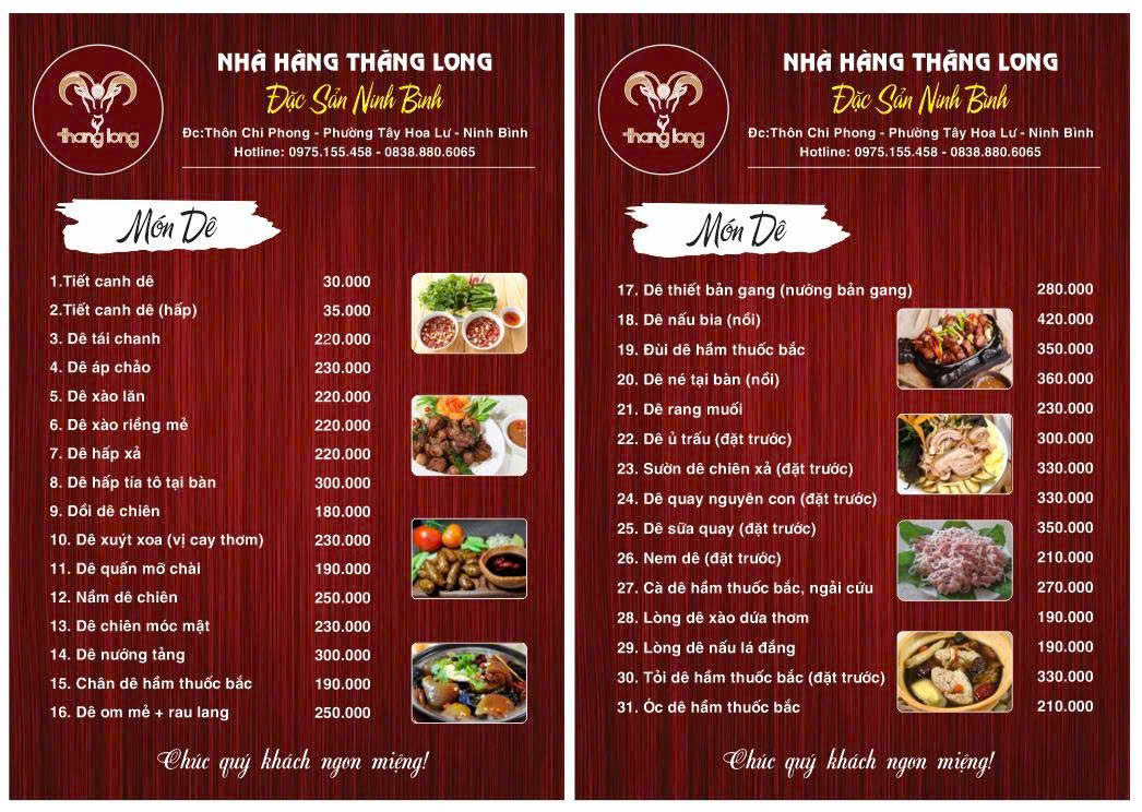 Nhà hàng Thăng Long không phải là nơi sang trọng nhất tại Ninh Bình, nhưng lại là một trong những địa điểm phù hợp nhất cho khách du lịch. Không gian rộng, vị trí thuận tiện và món dê núi đúng vị là những yếu tố giúp nơi đây trở thành điểm dừng chân quen thuộc.