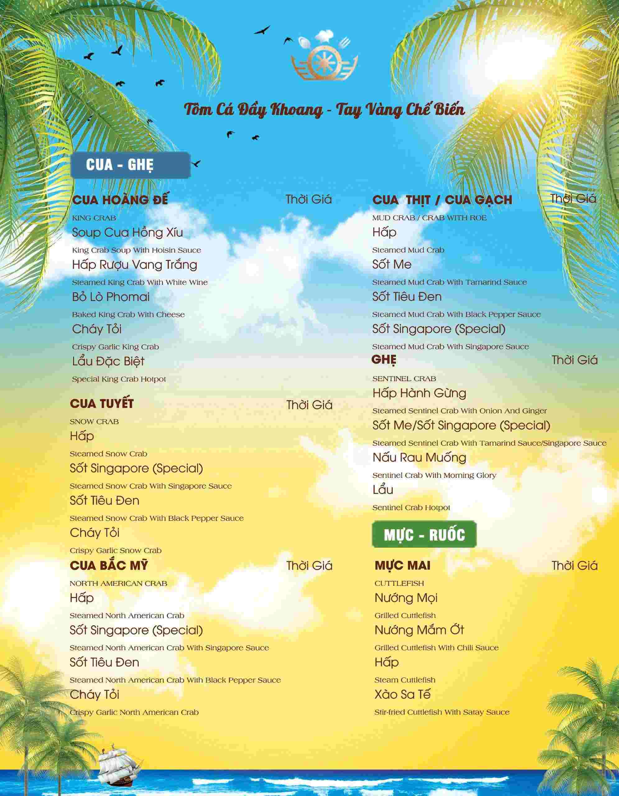 - Phong cách ẩm thực: Món Việt – Hải sản tươi sống