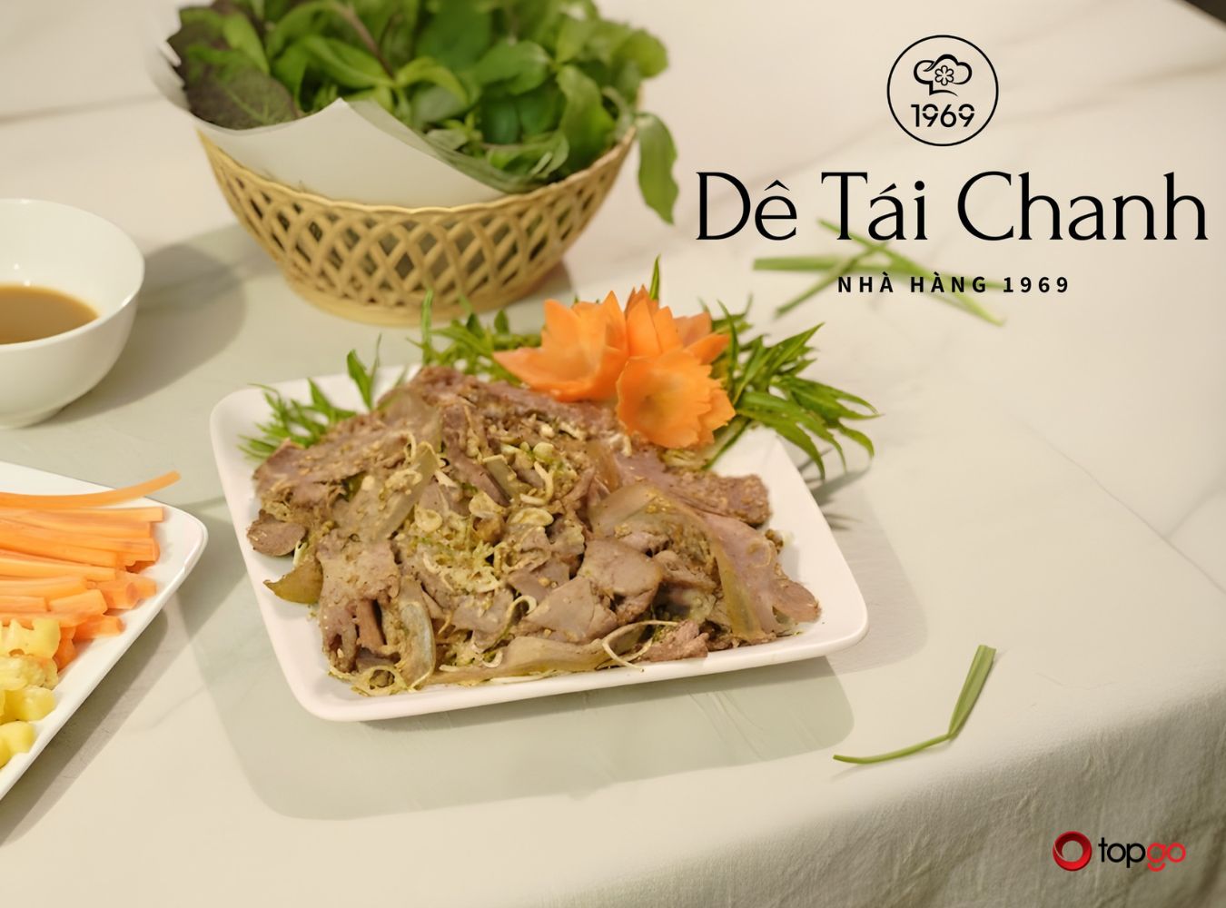 Dê tái chanh là lựa chọn quen thuộc của nhiều thực khách sành ăn. Thịt dê được xử lý khéo léo, giữ độ mềm và ngọt tự nhiên. Vị chua thanh của chanh kết hợp cùng hương thơm từ sả, gừng tạo nên tổng thể hài hòa.