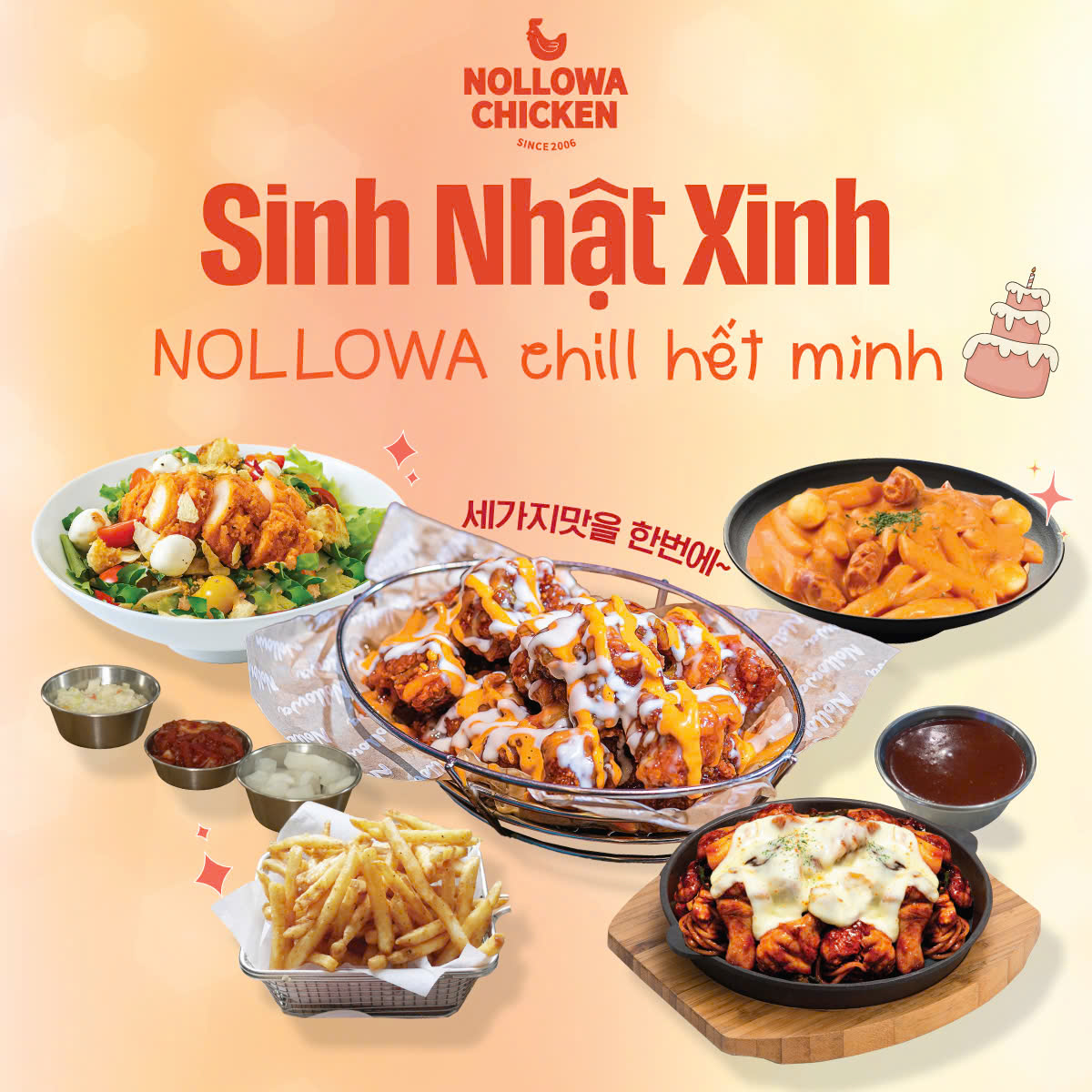 Và tại Nollowa Chicken có sẵn một món quà nhỏ cho ngày sinh nhật nữa đấy. Ở Nollowa, tiệc sinh nhật là để người trẻ thêm kỷ niệm, và các gia đình có thêm những phút giây ấm lòng bên nhau. Không cần là ngày thật to – chỉ cần là ngày bạn muốn thấy ai đó cười thật nhiều!