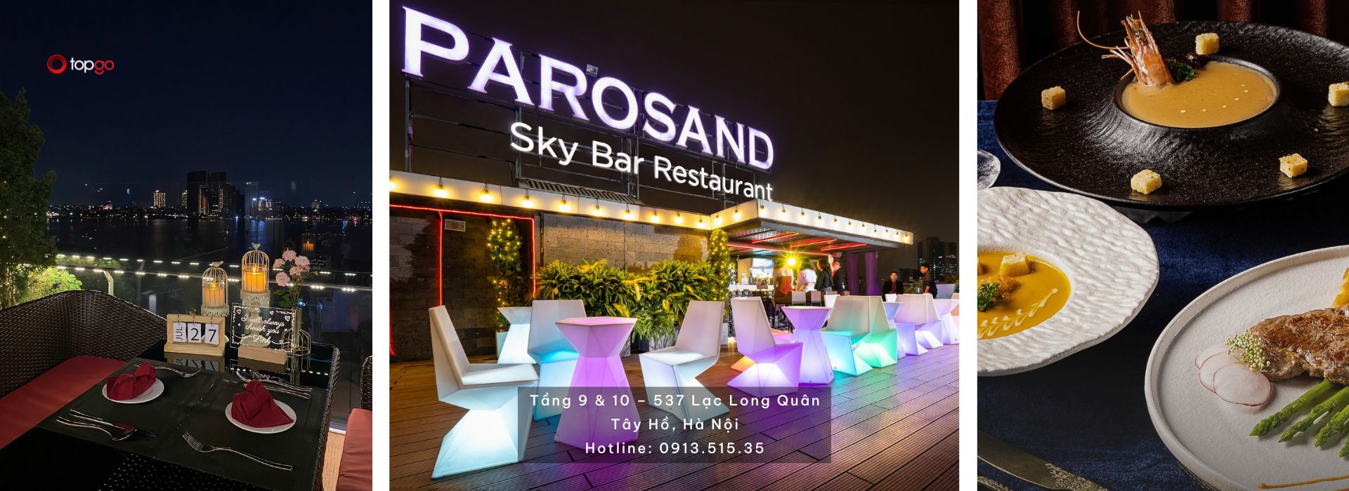 Parosand Sky Bar Restaurant không chỉ đơn thuần là một nhà hàng Âu. Đây là không gian của cảm xúc và sự tinh tế. Từ món bò dát vàng xa hoa đến ly vang dịu nhẹ trong ánh hoàng hôn. Từ phòng riêng ấm cúng đến khu sky bar lộng gió. Tất cả hòa quyện tạo nên một trải nghiệm trọn vẹn. Nếu bạn đang tìm kiếm một địa điểm sang trọng tại Tây Hồ để hẹn hò, tiếp khách hay tổ chức tiệc, Parosand Sky Bar Restaurant là lựa chọn xứng tầm.