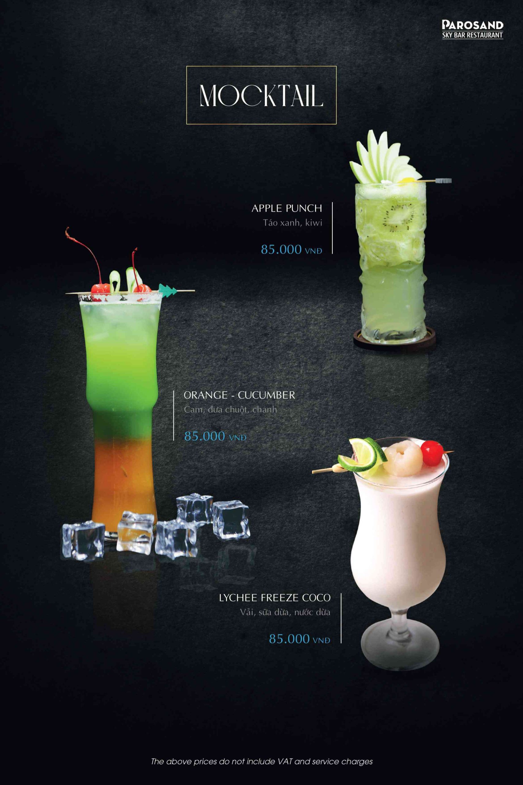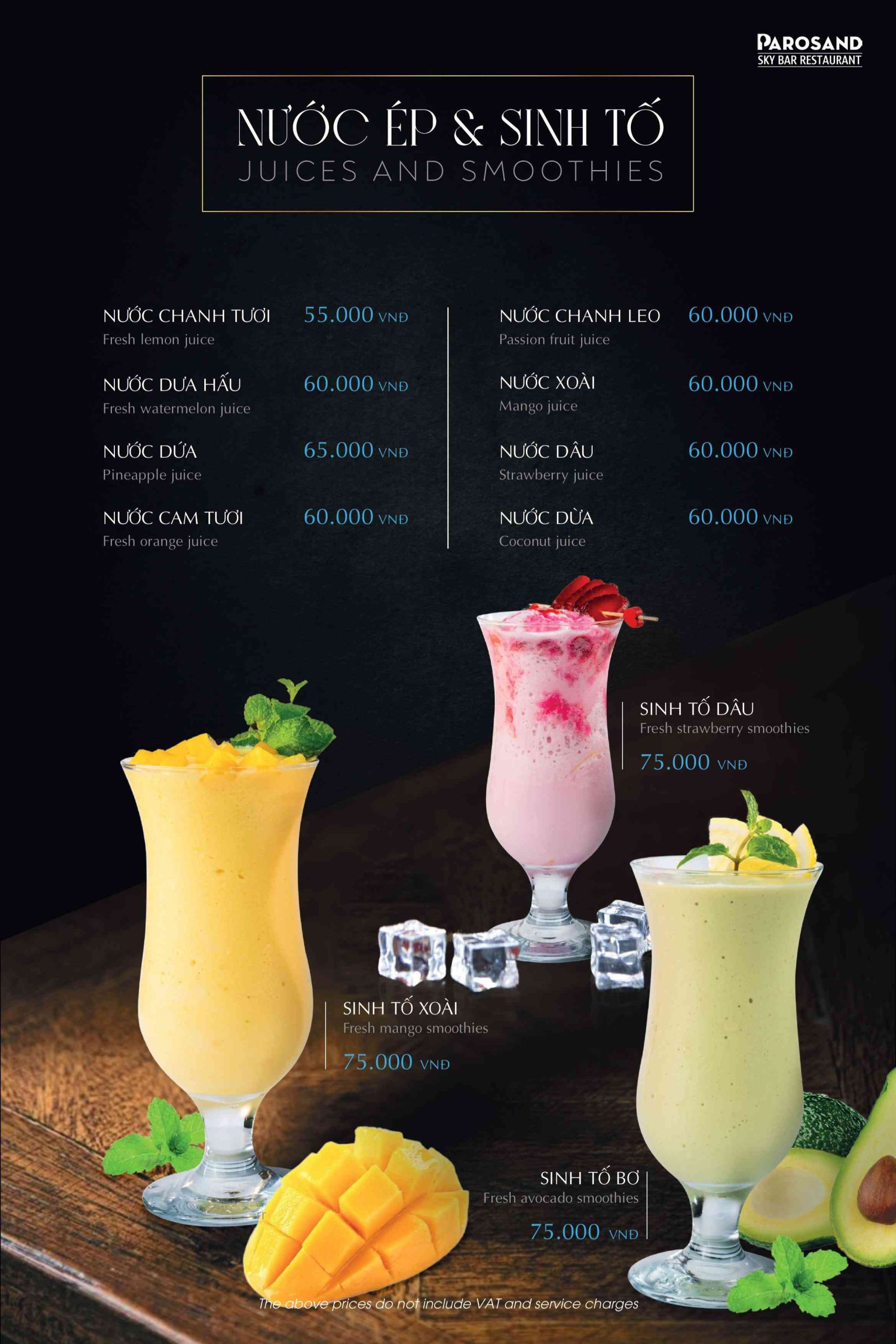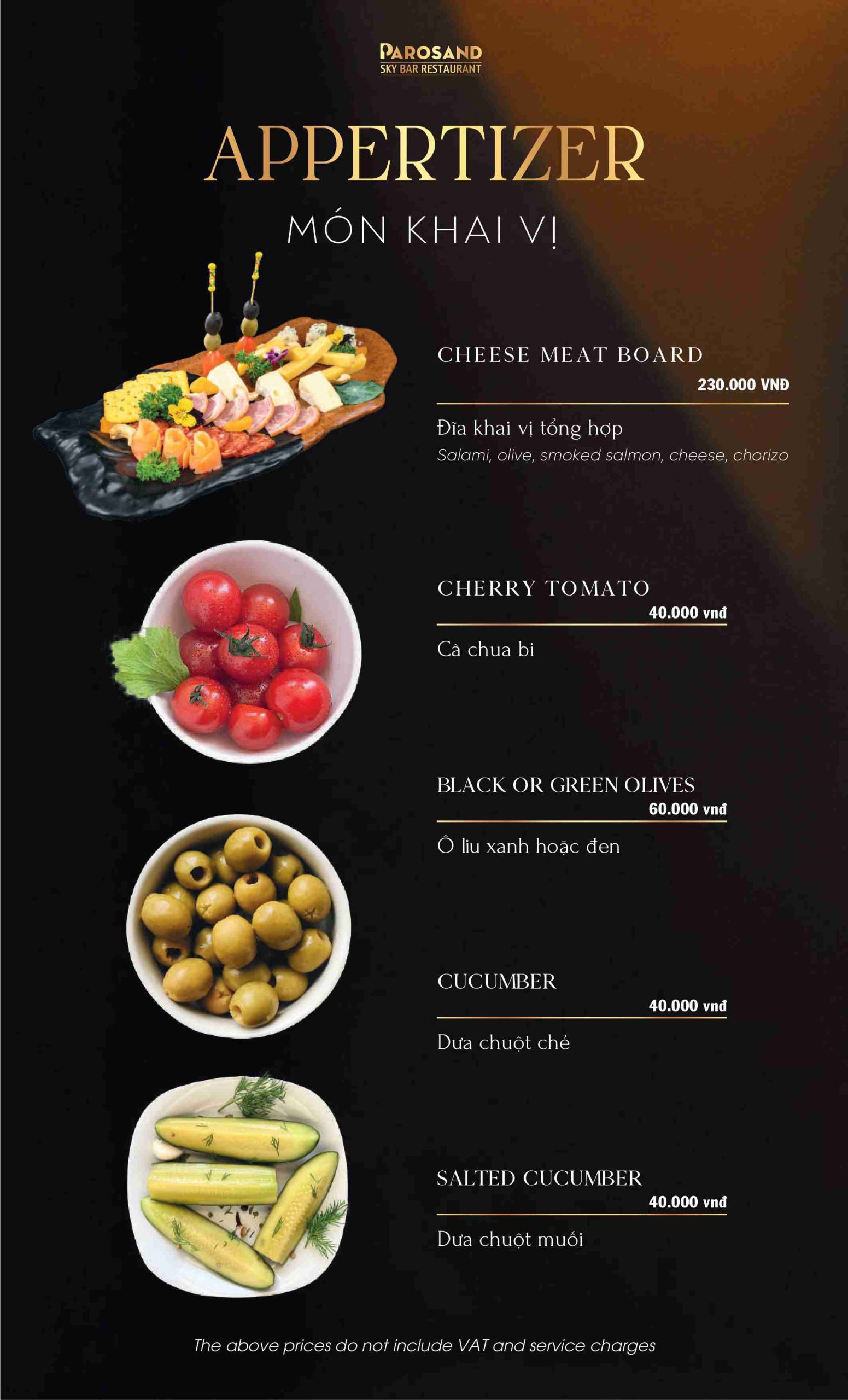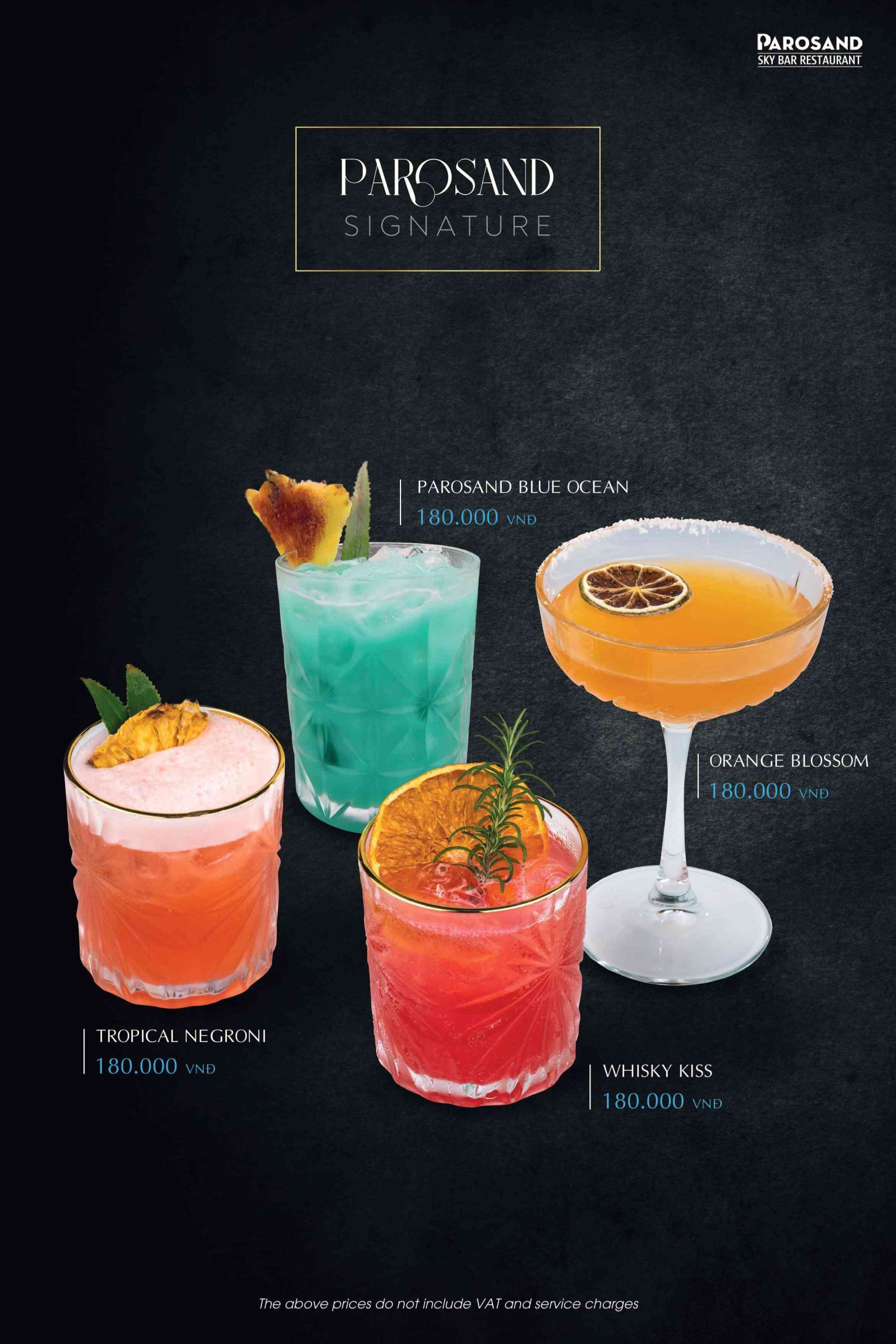 Parosand Sky Bar Restaurant theo đuổi phong cách ẩm thực Âu hiện đại chuẩn mực. Thực đơn được xây dựng khoa học và tuyển chọn kỹ lưỡng từng món. Nguyên liệu nhập khẩu cao cấp kết hợp cùng thực phẩm chất lượng trong nước. Mỗi món ăn được trình bày tinh xảo như một tác phẩm nghệ thuật đương đại. Đội ngũ đầu bếp am hiểu sâu sắc kỹ thuật chế biến chuẩn Âu. Họ đề cao hương vị nguyên bản và sự cân bằng gia vị tinh tế.