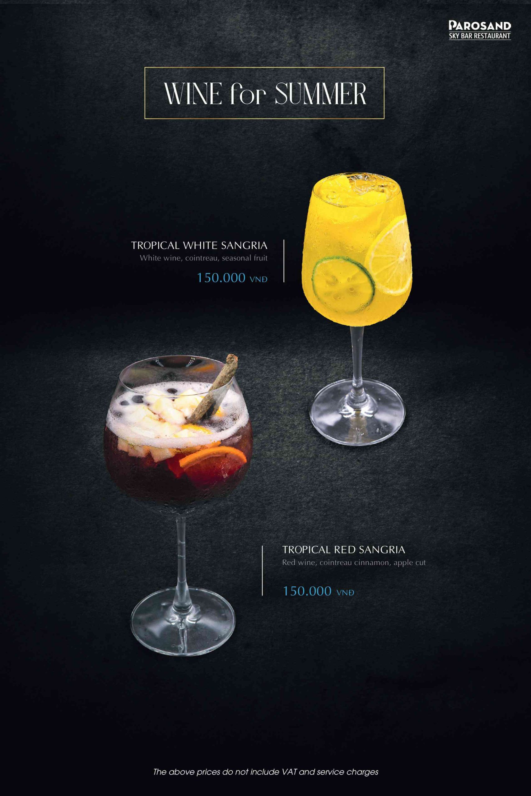 Parosand Sky Bar Restaurant sở hữu danh sách vang nhập khẩu đa dạng. Từ vang đỏ đậm đà đến vang trắng thanh lịch. Mỗi dòng vang đều được tuyển chọn kỹ. Phù hợp kết hợp cùng các món Âu trong thực đơn. Bên cạnh đó, nhà hàng còn phục vụ thức uống lúa mạch thủ công với nhiều hương vị đặc trưng. Thực khách có thể lựa chọn theo khẩu vị riêng. Không gian sky bar trên cao giúp những ly thức uống thêm phần thi vị. Ánh đèn và làn gió Hồ Tây khiến trải nghiệm trở nên trọn vẹn hơn.