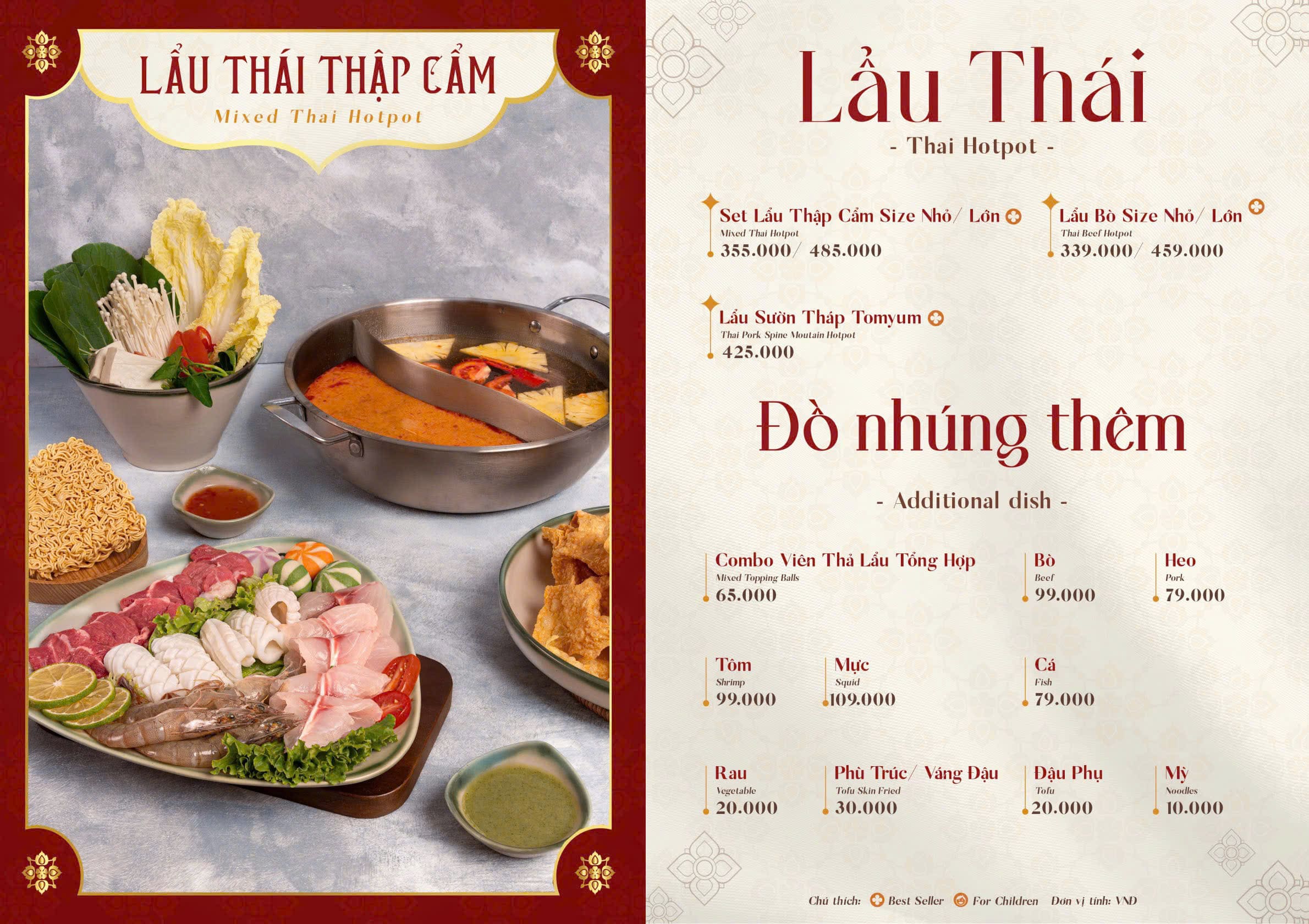 Phần topping đi kèm đa dạng, từ hải sản đến rau tươi. Mức giá khoảng 350.000 đồng cho một nồi lẩu phù hợp nhóm nhỏ. Đây là món ăn lý tưởng cho những buổi tụ họp gia đình hoặc bạn bè.