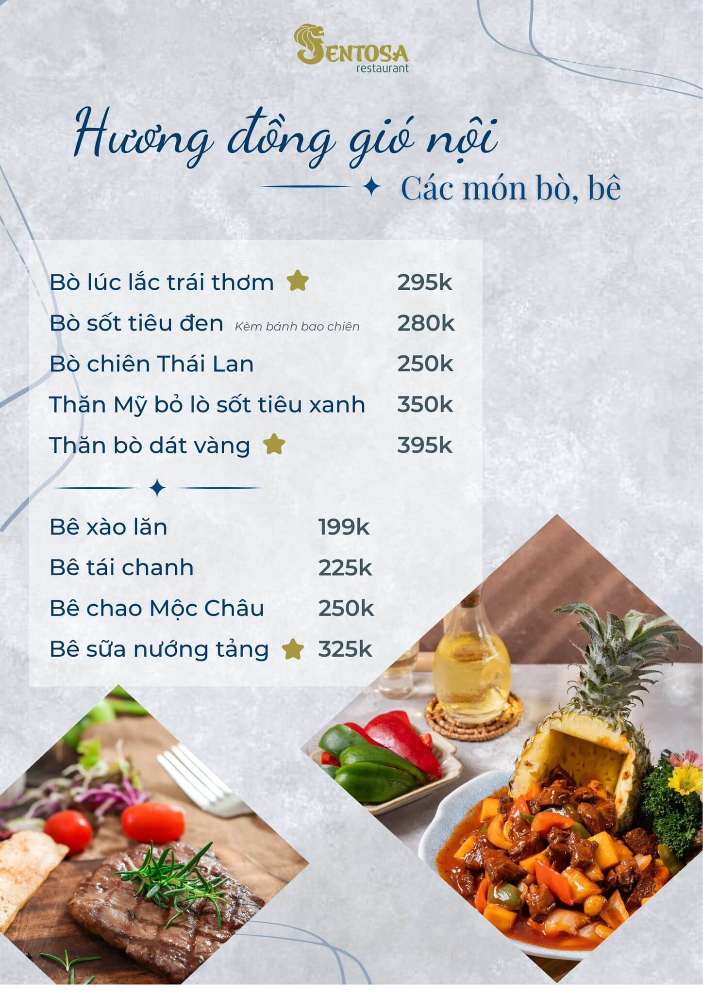 Món ăn này mang đến cảm giác lạ miệng, dễ ăn và rất phù hợp với những bữa tiệc nhẹ. Hương thơm từ thịt bò quyện cùng vị tươi mát của thơm khiến thực khách không thể dừng đũa. Sentosa Huỳnh Thúc Kháng luôn chú trọng trong khâu chế biến để giữ được vị tự nhiên của từng nguyên liệu.