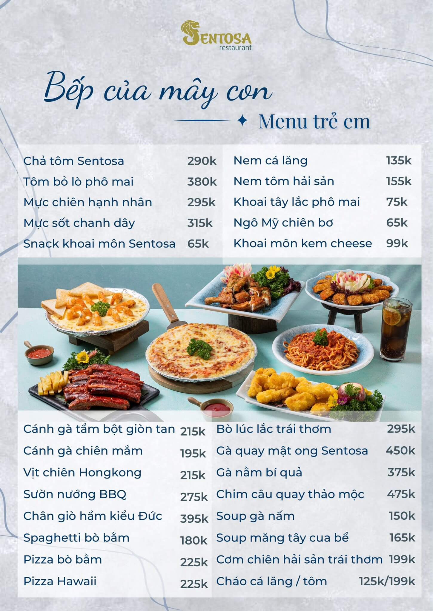 Ẩm thực tại Sentosa Huỳnh Thúc Kháng là điểm nhấn không thể bỏ qua. Thực đơn đa dạng, kết hợp tinh hoa ẩm thực Việt với phong cách chế biến hiện đại. Đội ngũ đầu bếp nhiều năm kinh nghiệm của Sentosa Huỳnh Thúc Kháng luôn chọn nguyên liệu tươi ngon, đảm bảo chất lượng cho từng món ăn.