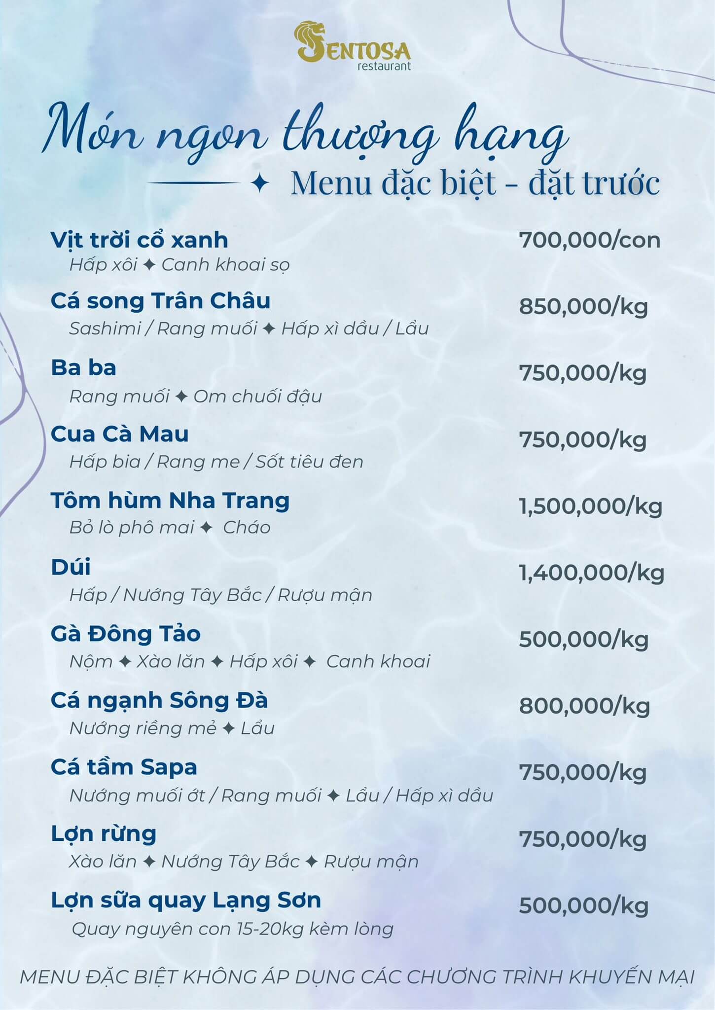 Không cần đến những lời quảng cáo hoa mỹ, Sentosa Huỳnh Thúc Kháng luôn chinh phục khách hàng bằng chính trải nghiệm thực tế. Nhiều thực khách sau khi dùng bữa đều ấn tượng với không gian sang trọng, món ăn đậm đà và phong cách phục vụ chuyên nghiệp.